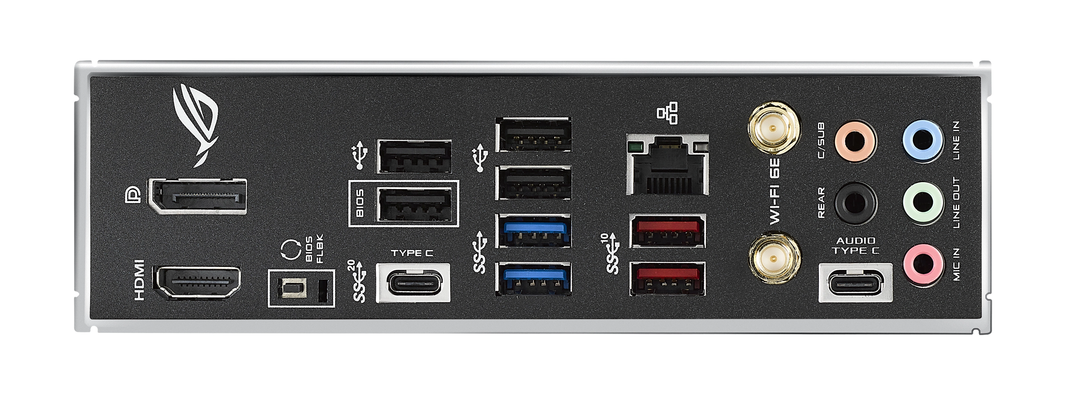 ROG's patented I/O shield is finished in sleek matte black and comes pre-mounted to make it easy to install the motherboard.