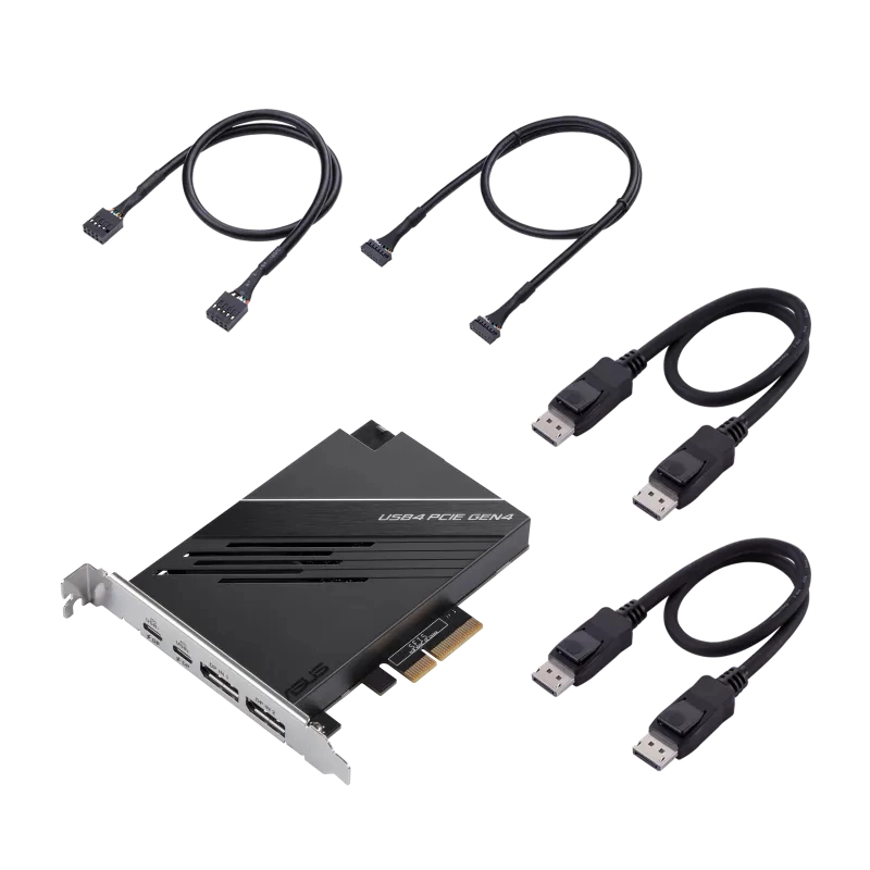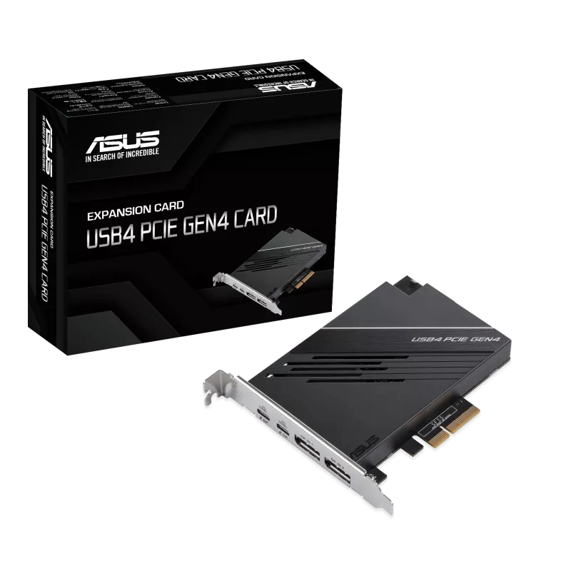ASUS USB4 PCIe Gen4 Card is an USB4® add-on card that offers 40 Gbps bi-directional bandwidth, design for USB4® device compatibility, including the future arrival of faster USB4® drives, guaranteed for two external 4K monitors and provide dual 20V/3A 60W Quick charge features.