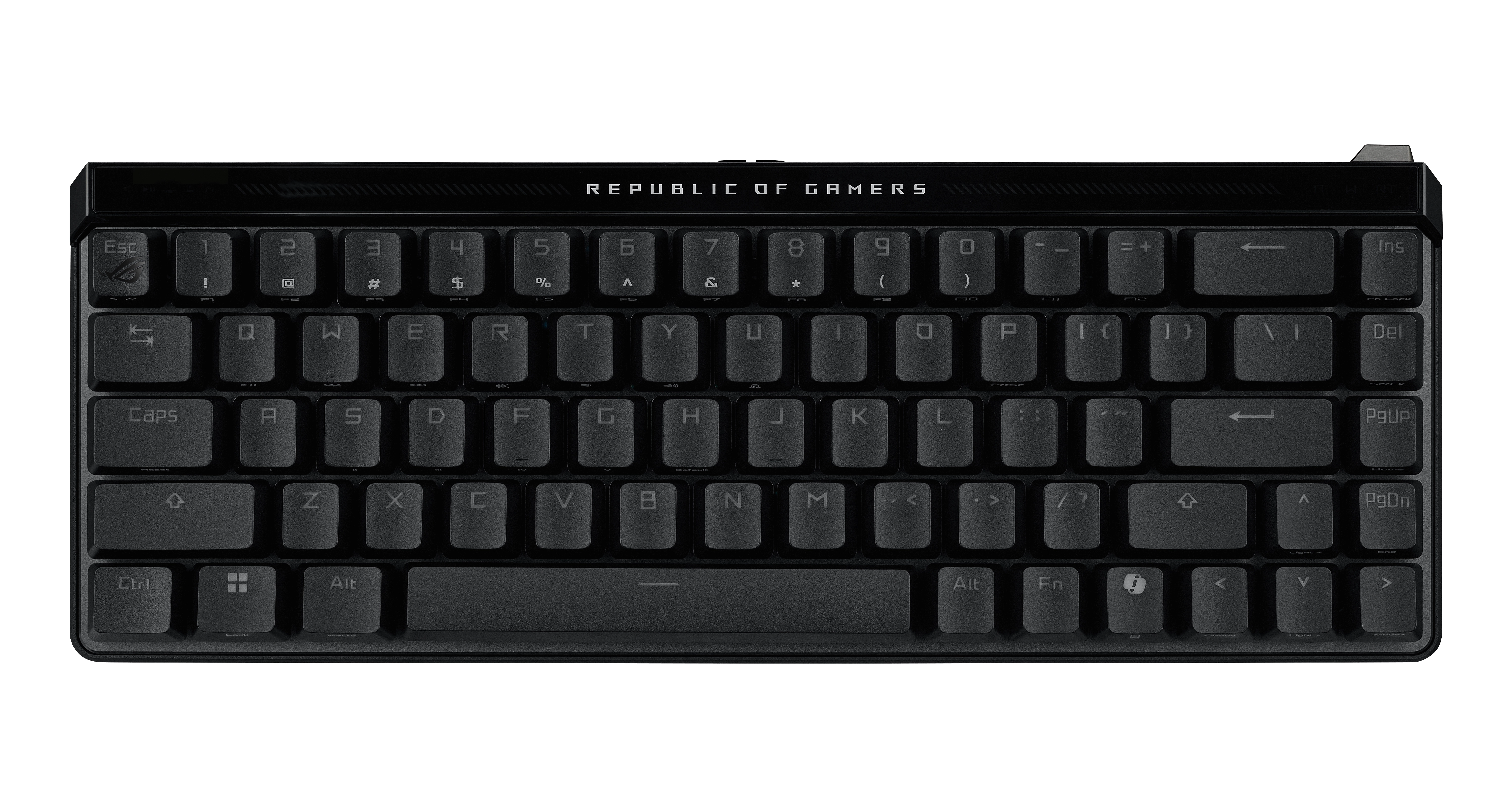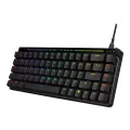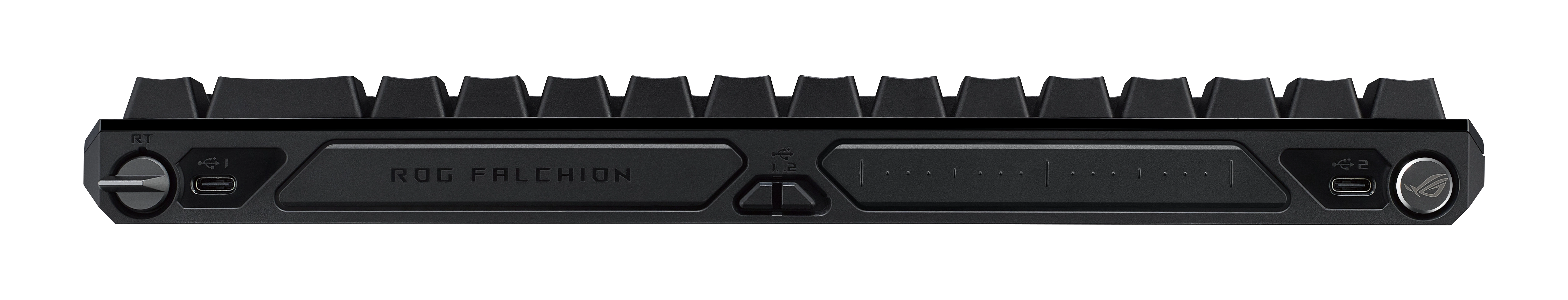 The ROG Falchion Ace HFX is a compact 65% analog gaming keyboard that boasts ROG HFX Magnetic Switches that feature a customizable 0.1-4.0 mm actuation range, along with a dedicated Rapid Trigger toggle for the fastest typing response. Plus, an 8000 Hz polling rate ensures ultra-responsive performance, making the Falchion Ace HFX considerably faster than competitor keyboards. Five-layer dampening and a silicone gasket mount absorb pinging noises and vibrations to provide superior typing experiences. A multifunction button and interactive touch panel allow for intuitive and effortless actuation point adjustments, control over media playback, volume, and keyboard lighting. Dual USB-C® ports on the left and right rear panel of the keyboard offer flexible connectivity, with a quick-toggle to switch between two PCs.