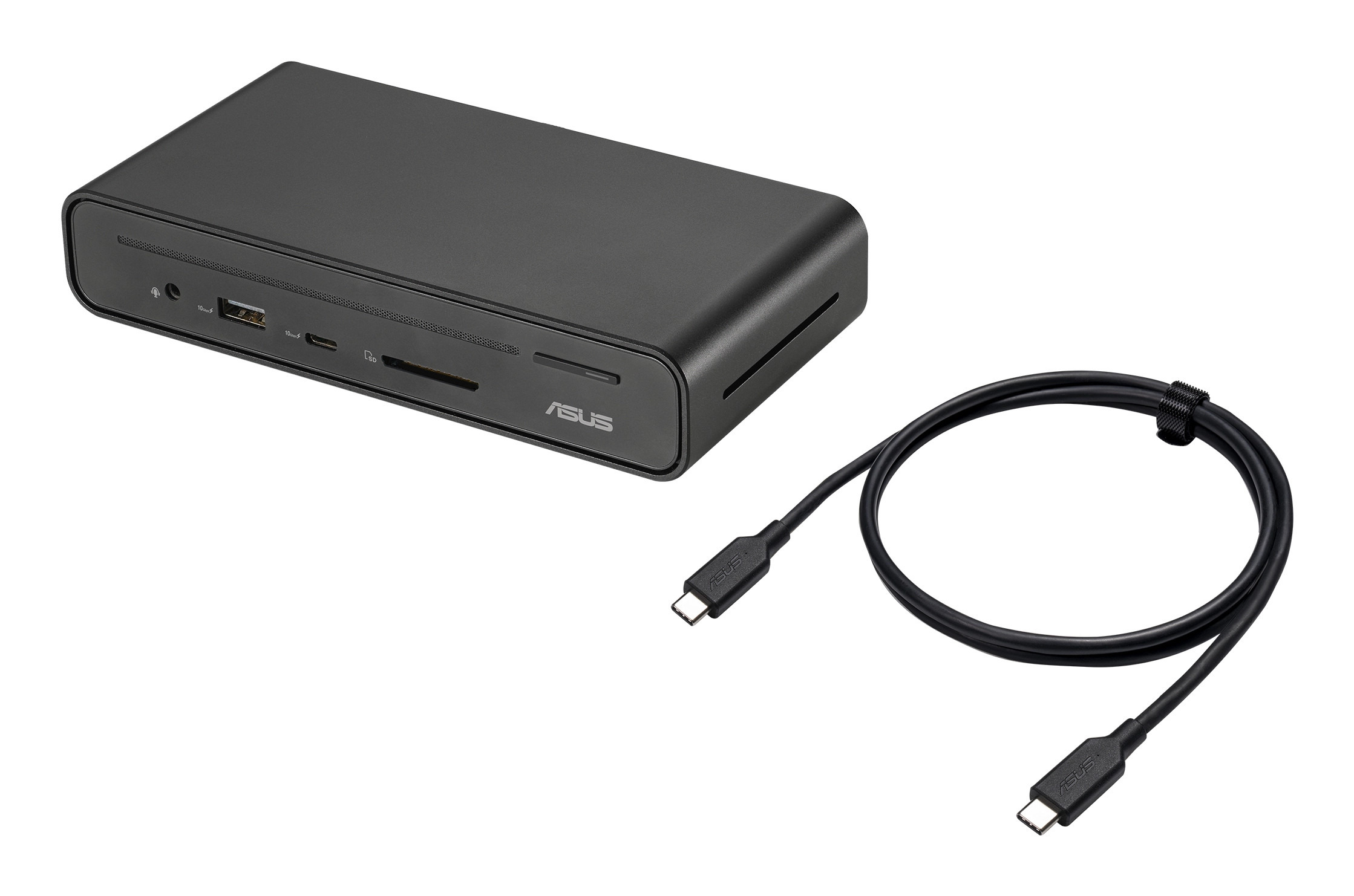 ASUS Triple Display USB-C Dock Duo DC301 Duo is a sleek, compact one-stop device that streamlines laptop connectivity. Power your laptop through a single cable, connect to your network and peripherals, and multitask with up to four monitors1 — including a laptop monitor and three external monitors. It also has an integrated SD card reader for a diverse array of business scenarios. Simply put, ASUS Triple Display USB-C Dock Duo DC301 Duo keeps your desk neat, tidy and organized while setting you up for work in the blink of an eye.