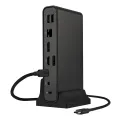 ASUS Triple Display USB-C Dock Duo DC301 Duo has a multitude of I/O ports: three external screens can be connected via HDMI®, USB-C® and 2 DisplayPort™, two USB 3.2 Gen 1 Type-A ports support a keyboard and mouse, and there’s a USB-C® port, a USB Type-A port, an RJ45 network port, an audio jack for earphones, and a SD card reader for data transfers. That’s a total of 12 functions3.