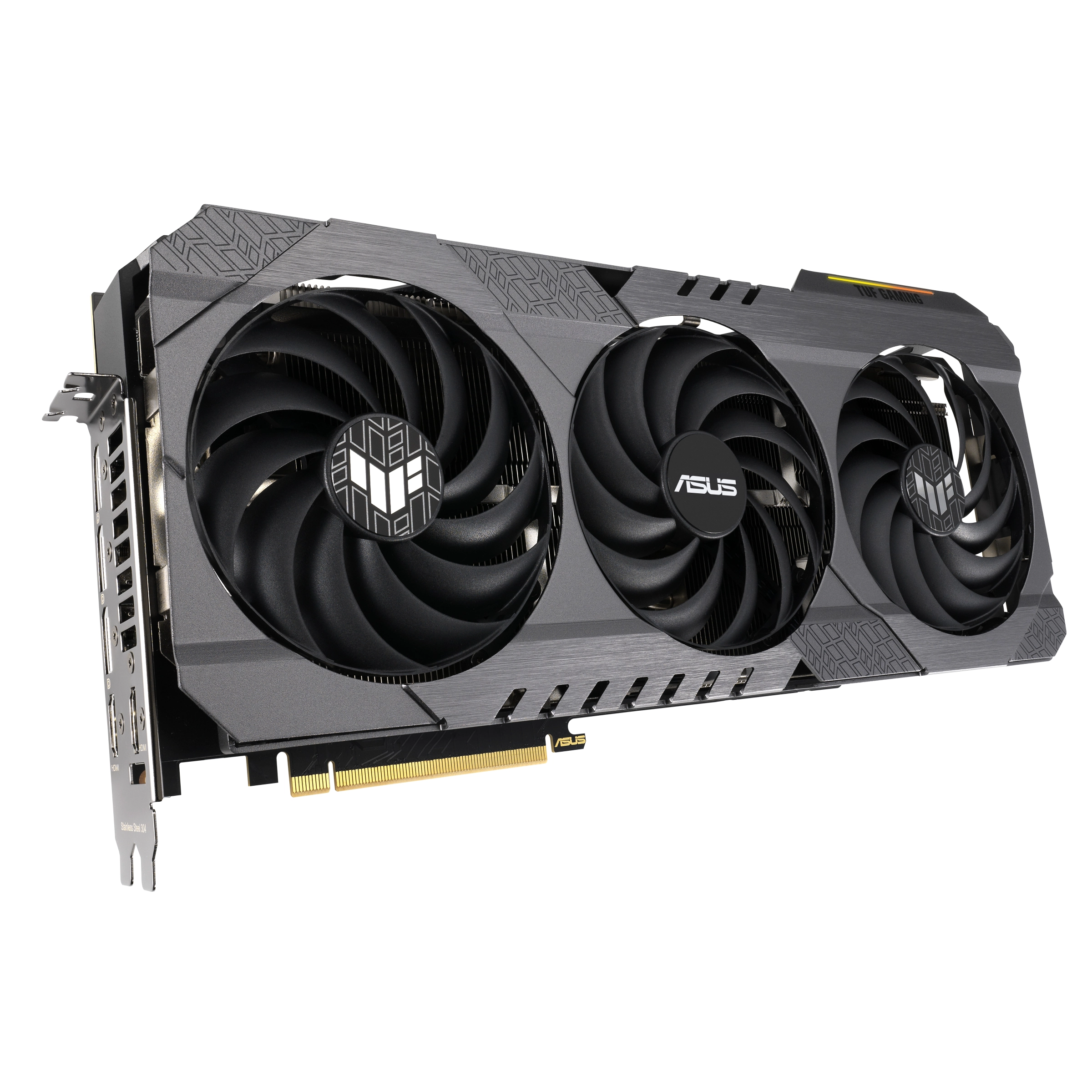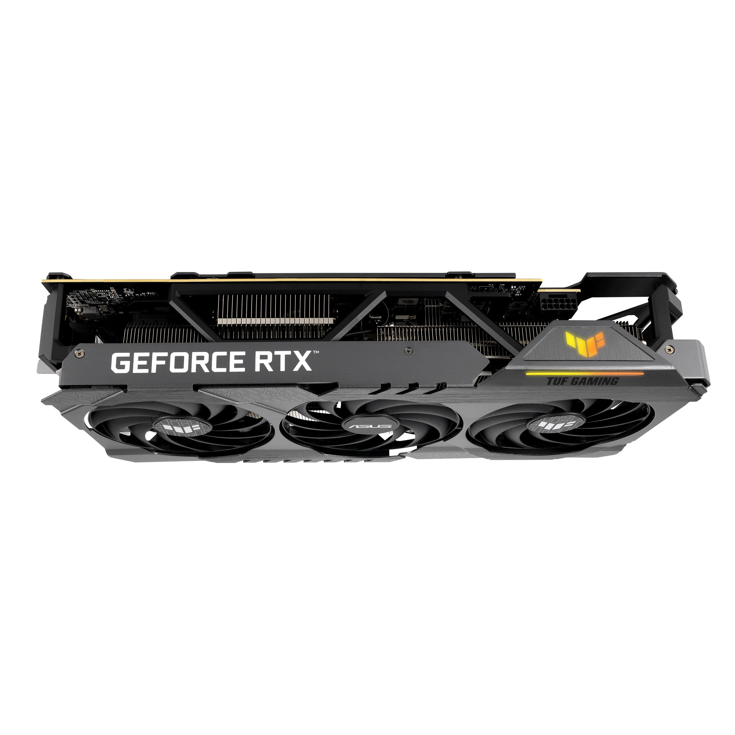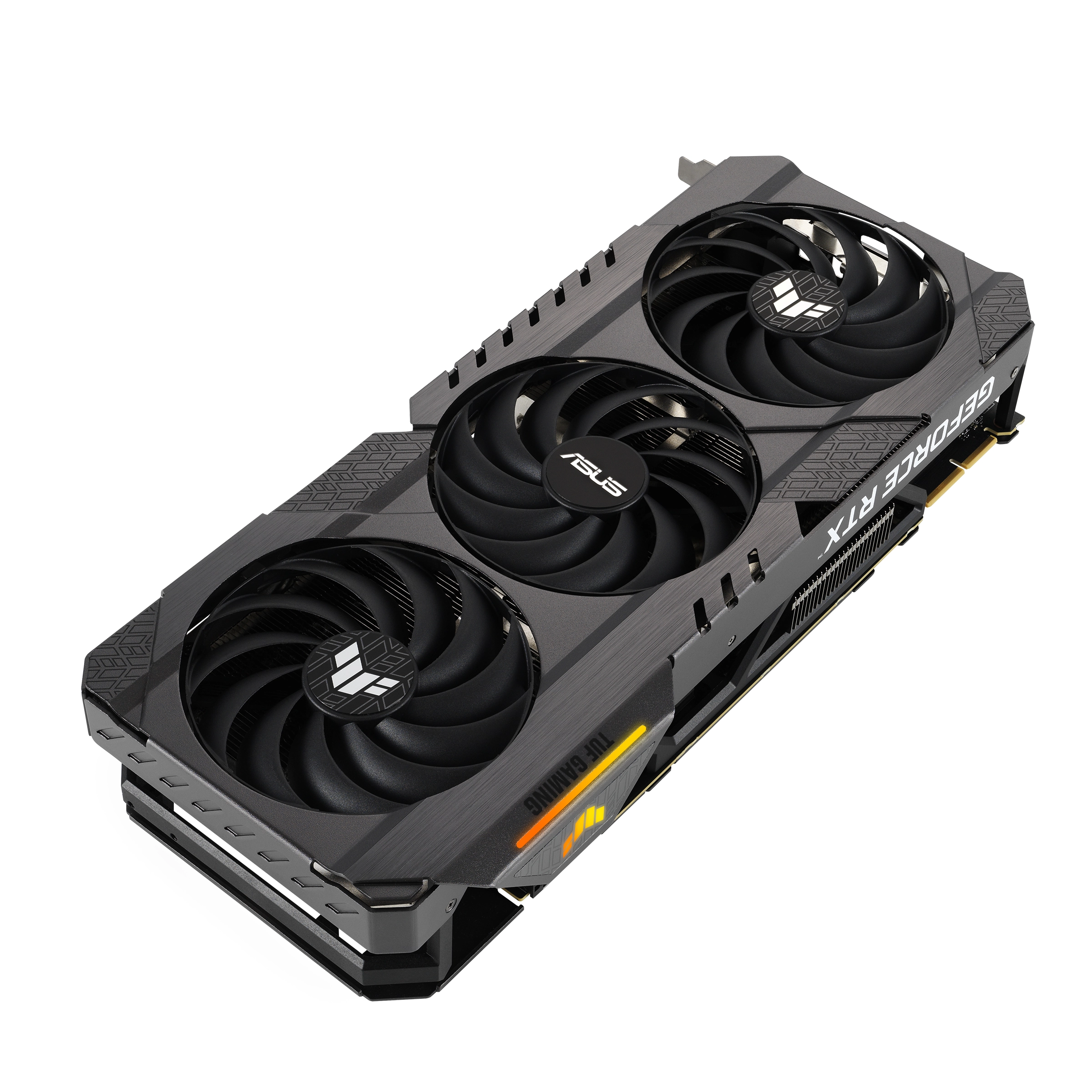 TUF Gaming cards leverage our tried-and-true Axial-tech fan design, with three fans working in tandem to satisfy the thermal demands of NVIDIA's new high-octane design. The fans rely on dual ball fan bearings to ensure consistent performance and increased longevity compared to sleeve bearings and other bearing types.