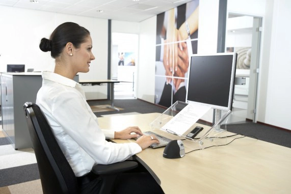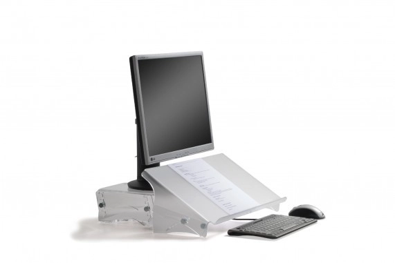 - Creats an in-line workstation: document holder is placed between screen and keyboard, that prevents undue head and neck movements.