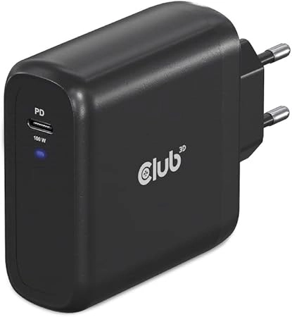 The Club 3D CAC-1908 Travel Charger 100 Watt GAN technology, USB-IF TID certified, Single port USB Type-C, Power Delivery(PD) 3.0 Support is Compact in size & Superior in Performance: GAN technology chipset makes this charger 50% smaller than a traditional 100Watt Laptop chager, small enough to carry anywhere. Our CAC-1908 100Watt wall charger match a variety of PD devices from smart phones to laptops, one for all making charging simple. This wide compatibility charger will be your convenient companion during your business trip or vacation.