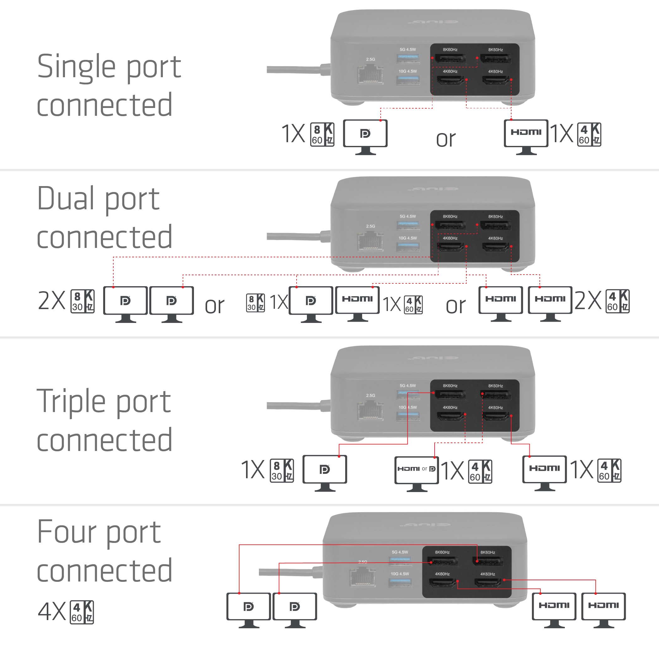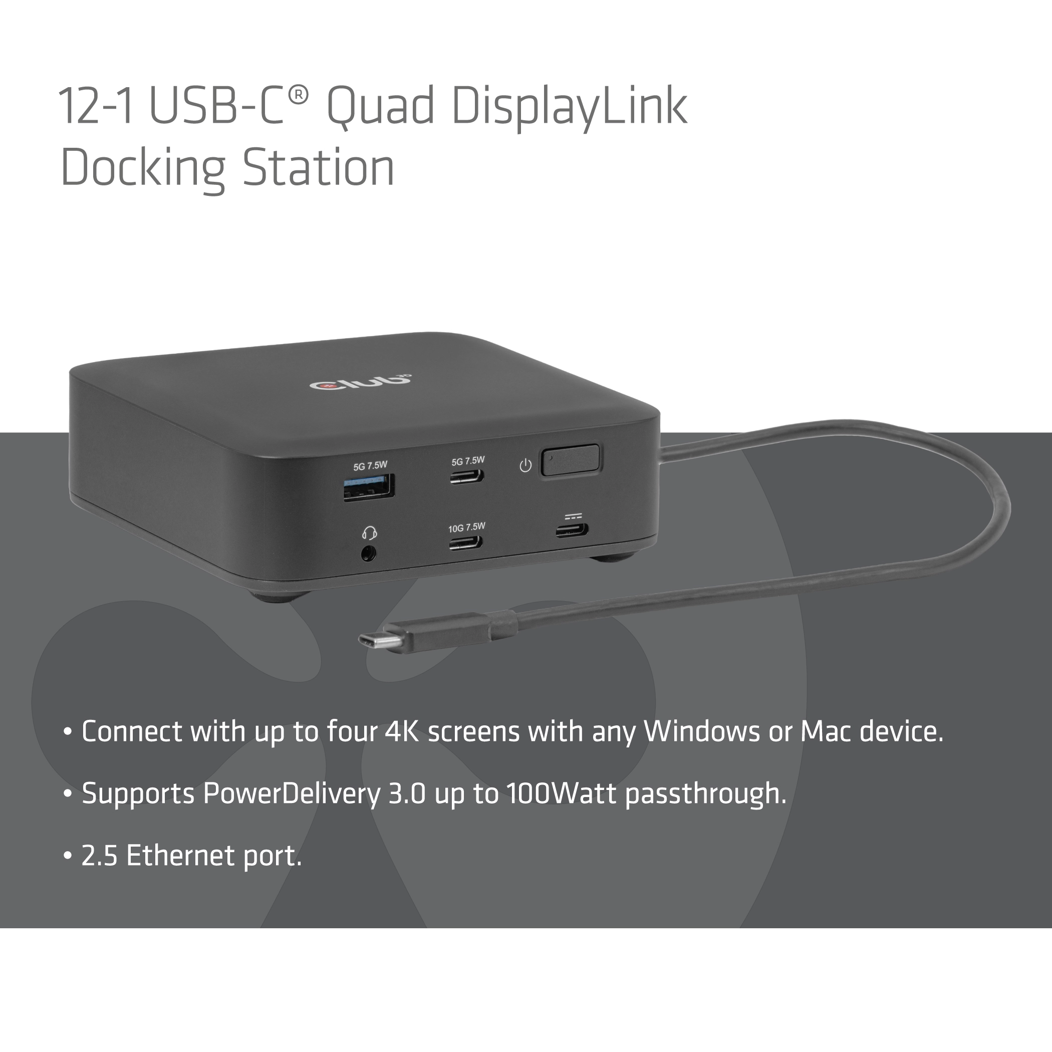 • QUAD DISPLAY DOCKING STATION: Working on any PC or MAC in 4K,