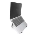 The durable aluminium body ensures reliability, and holds up to 17” and a 4, 9 kg load, making it suitable for most laptops. It quickly collapses to fit in your pocket or computer bag. And then it keeps your computer cool. With the three pod design, you keep the fan free, and makes it easy on your computer to keep cool, even when working for several hours.