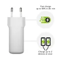 This 2x 30-watt wall charger with USB-C connectors offers universal fast and safe charging for smartphones, tablets and some Laptops (mainly USB-C-PD-enabled, PPS and QC devices). Purposefully designed for travel, home or the office.