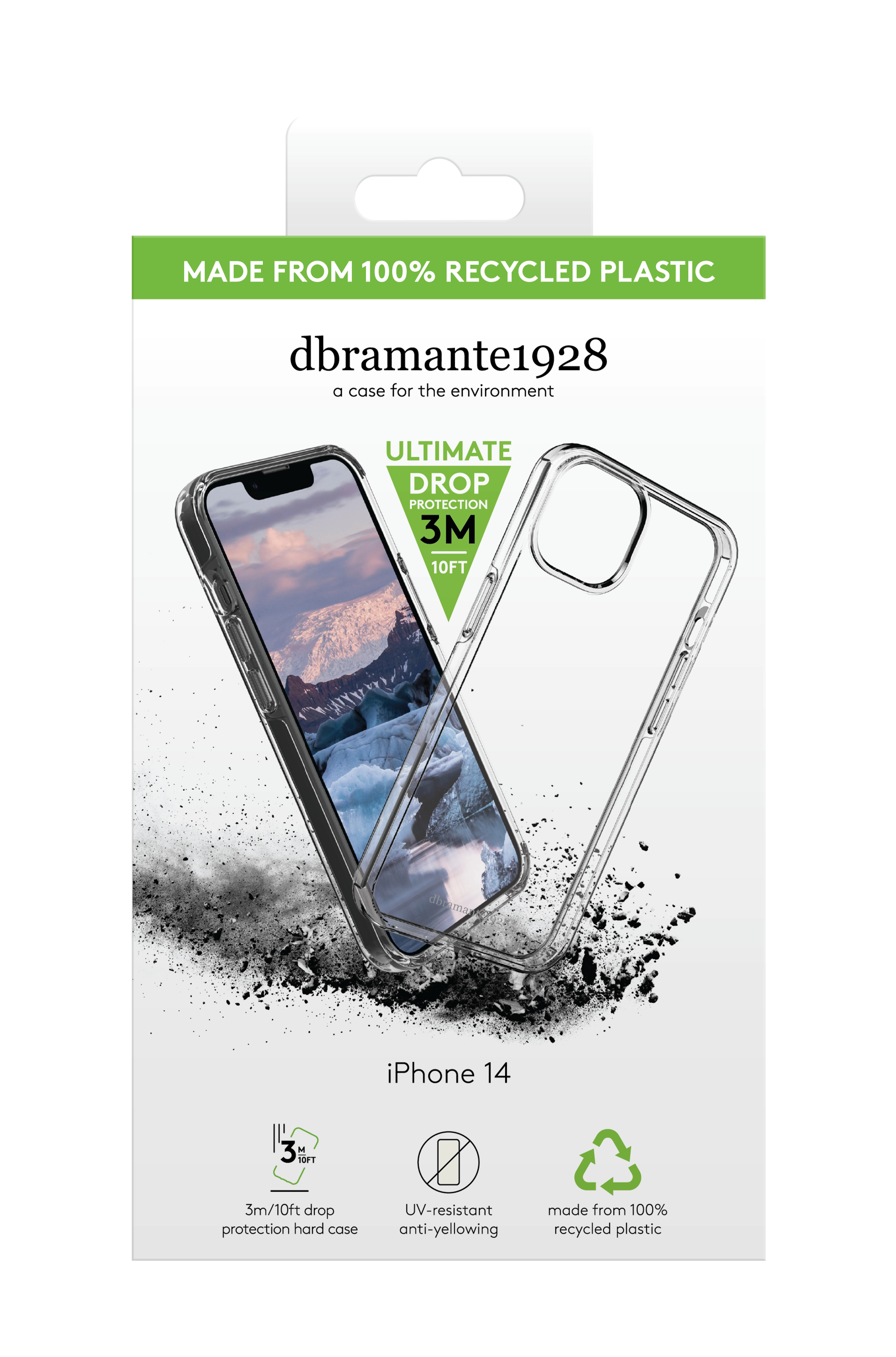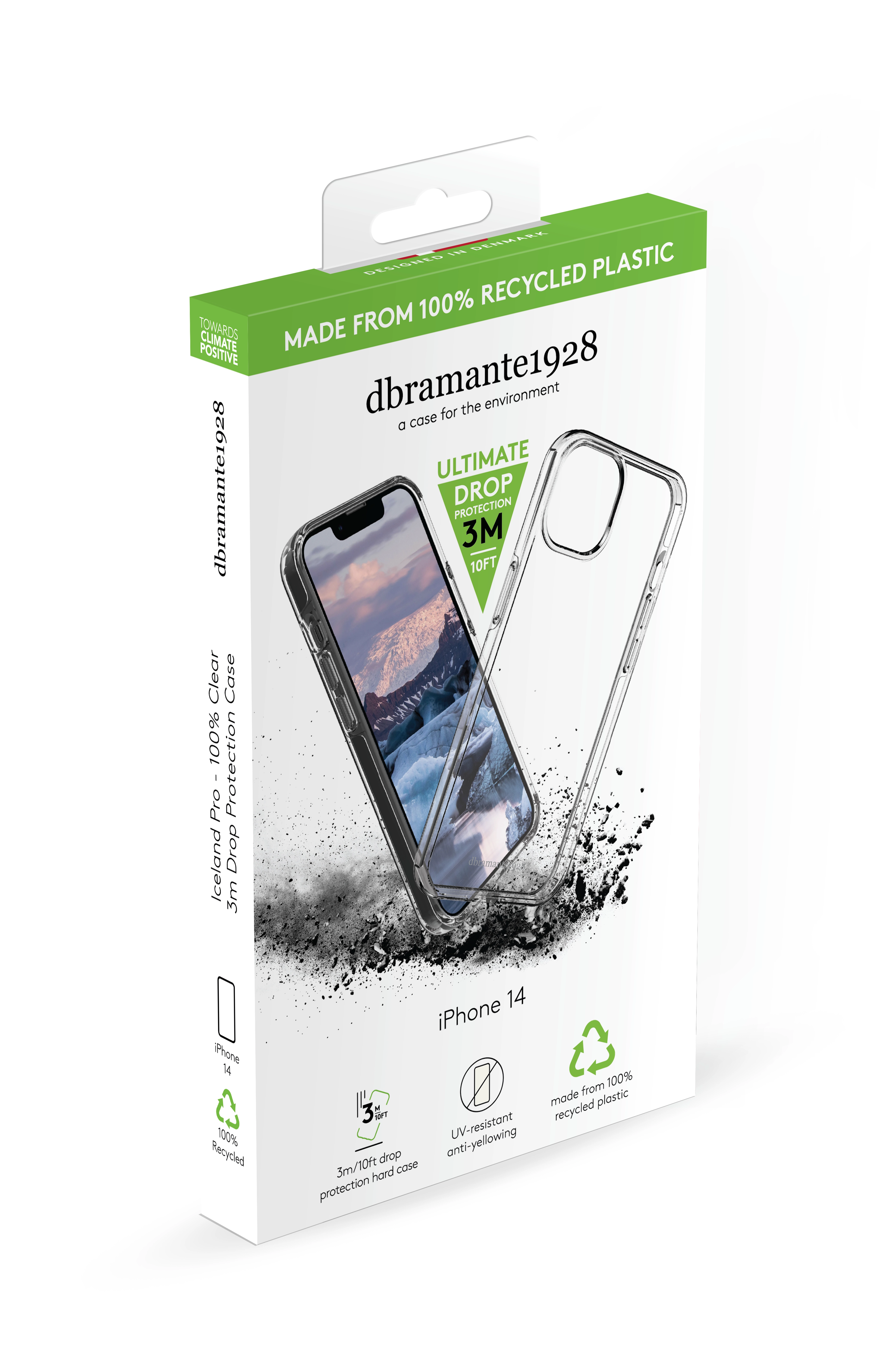 Keep our oceans clear of plastic with this snap-on hard case made from 100% recycled and recyclable plastic! Iceland Pro features 3m all-around drop protection and raised edges for supreme protection of your phone. With its eco-friendly ice-clear material and all-around protection, you can show off your phone with peace of mind.