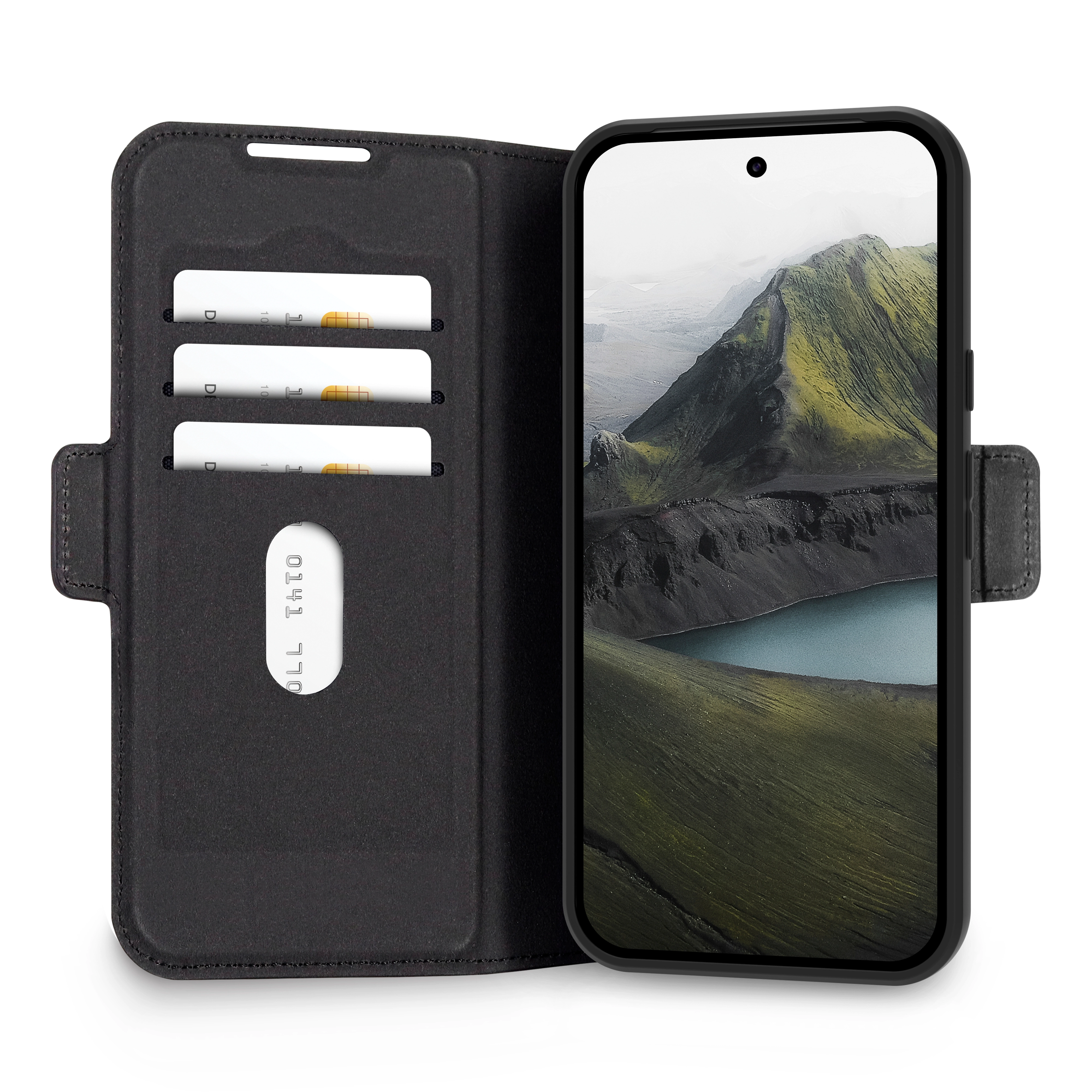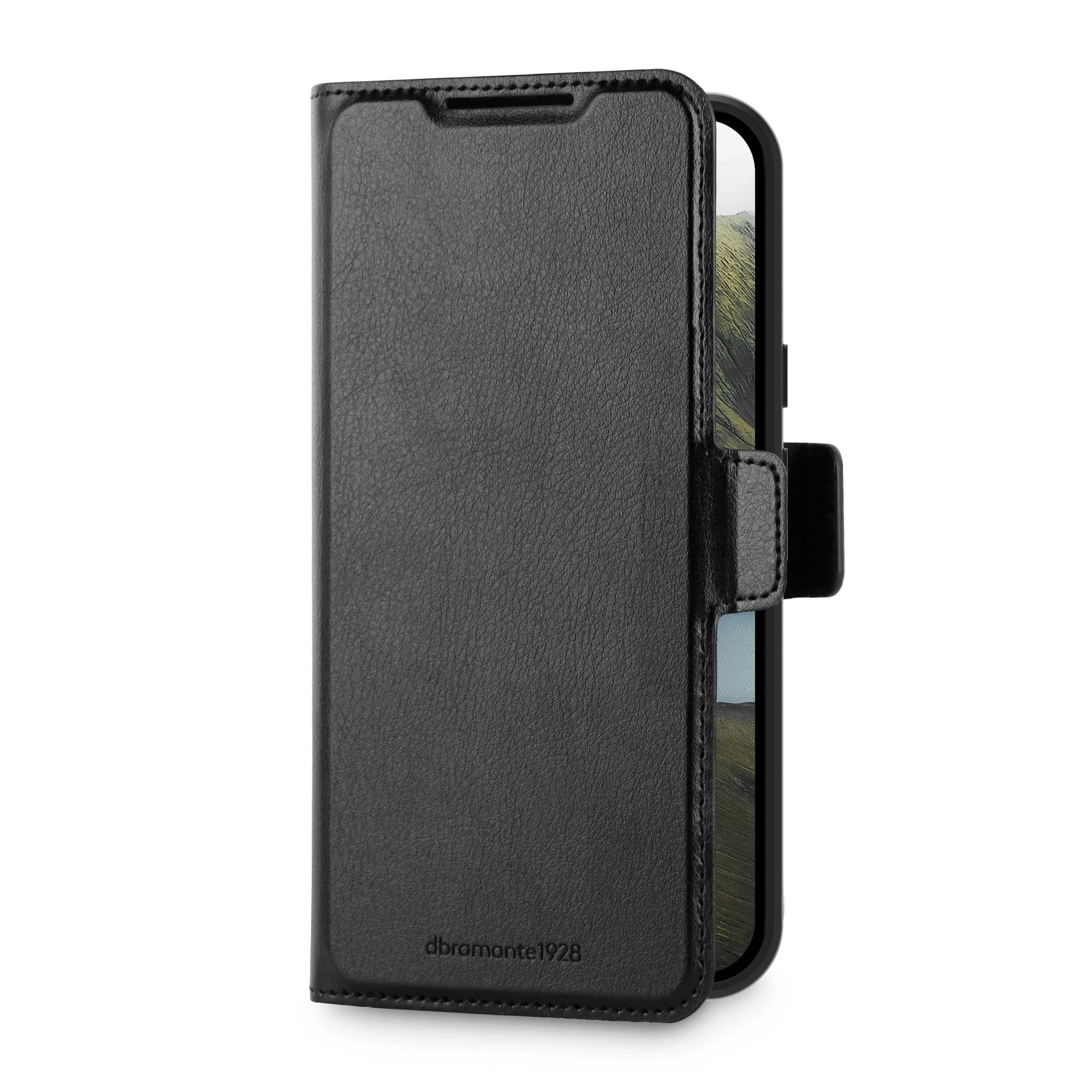 Oslo Pro is an impact protective folio wallet case made from recycled plastic with a finish meant to look and feel like leather. With its foldable back, you can enjoy hands-free horizontal video watching.