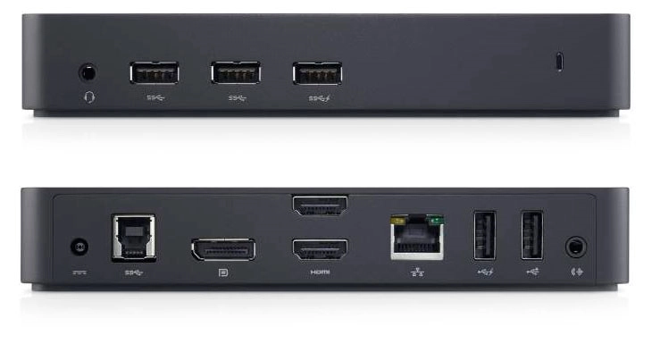 The Dellâ„¢ Docking Station - USB 3.0 connects your laptop to up to three additional monitors, various external devices and the Internet with a single cable. It features a convenient way to expand the capabilities of your portable PC and customize your desktop computing environment. This sleek, compact dock unlocks enhanced productivity and entertainment options with highspeed connectivity and support for Ultra HD 4K displays. It also includes three USB 3.0 ports, as well as two USB 2.0 connections, ensuring compatibility with a vast array of peripherals, such as external hard drives, printers and scanners. Moreover, it is a great choice for corporate environments with Wake-On-LAN and PXE boot (on selected platforms).