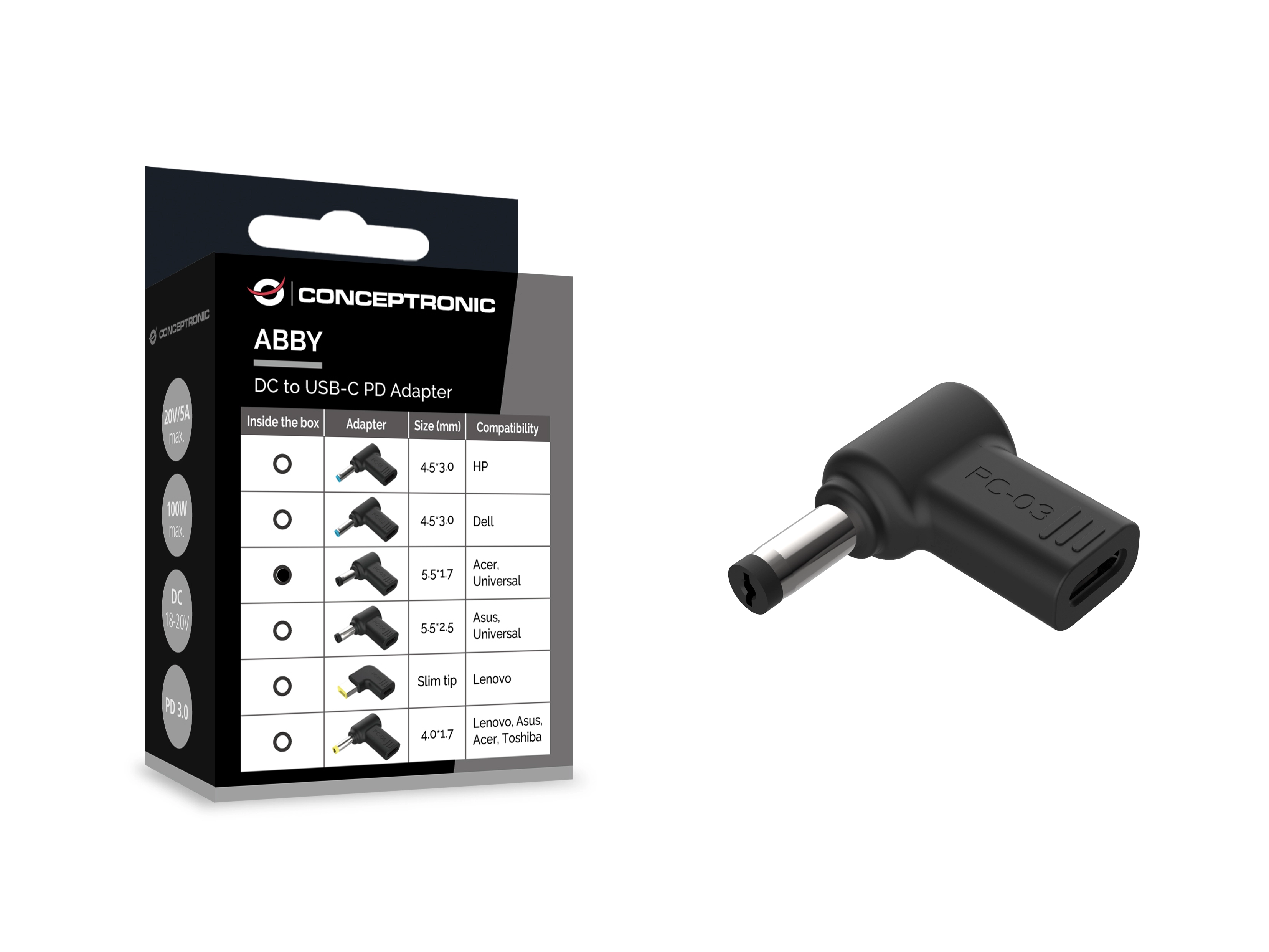 DC to USB-C Adapter - Acer/Universal 5.5x1.7mm - 18-20V