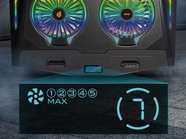 Optimize your gaming experience with the THYIA gaming laptop cooling stand! Adjustable RGB lighting effects enrich the gaming ambience, while quiet yet powerful fans create safe and comfortable operating conditions for your portable device.