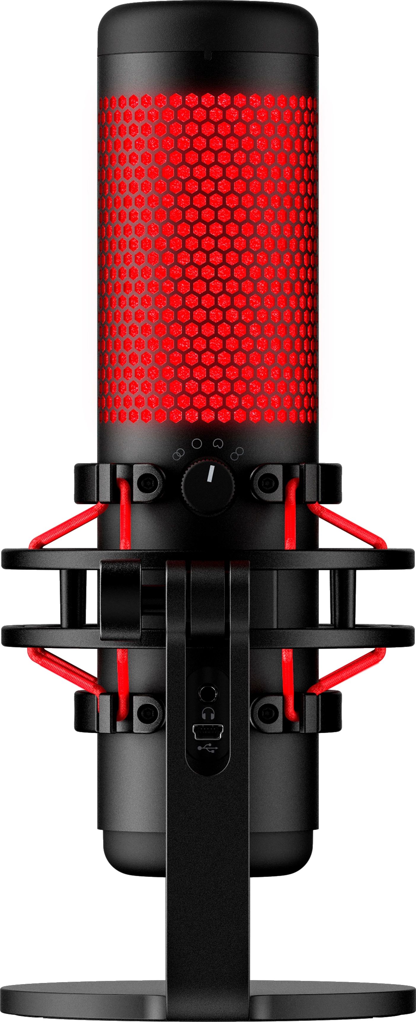 The HyperX QuadCast™ is the ideal all-inclusive standalone microphone for the aspiring streamer or podcaster looking for a condenser mic with quality sound. QuadCast comes with its own anti-vibration shock mount to help reduce the rumbles of daily life and a built-in pop filter to muffle pesky percussive sounds. Instantly know your mic status with the LED indicator, and simply tap-to-mute to avoid awkward broadcasting accidents. Select between the four polar patterns (stereo, omnidirectional, cardioid, bidirectional) and use the conveniently-located gain control dial to quickly adjust your mic input sensitivity. The included mount adapter that fits both 3/8” and 5/8” thread sizes and is compatible with most stands. Monitor your mic input with the built-in headphone jack, and QuadCast is certified by Discord and TeamSpeak™ so you can ensure that your microphone is broadcasting loud and clear for all your followers and listeners. Whether you’re plugging into a PC, PS5™, PS4™, or Mac® you’ll be able to deliver quality sound to anyone tuning in.