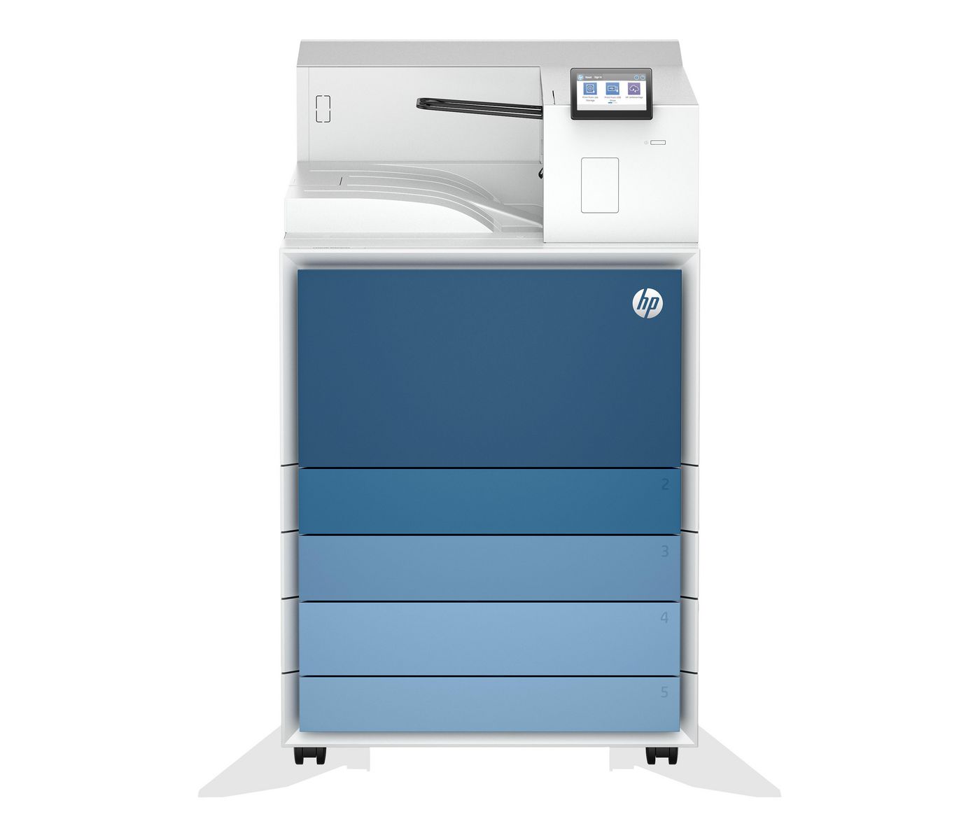 Tray 1: 98 x 139.7 to 320 x 457.2 mm; Tray 2: 98 x 139.7 to 297 x 390 mm; Tray 3: 140 x 182 to 320 x 457.2 mm; Tray 4: 140 x 182 to 320 x 457.2 mm; Tray 5: 140 x 182 to 320 x 457.2 mm |
