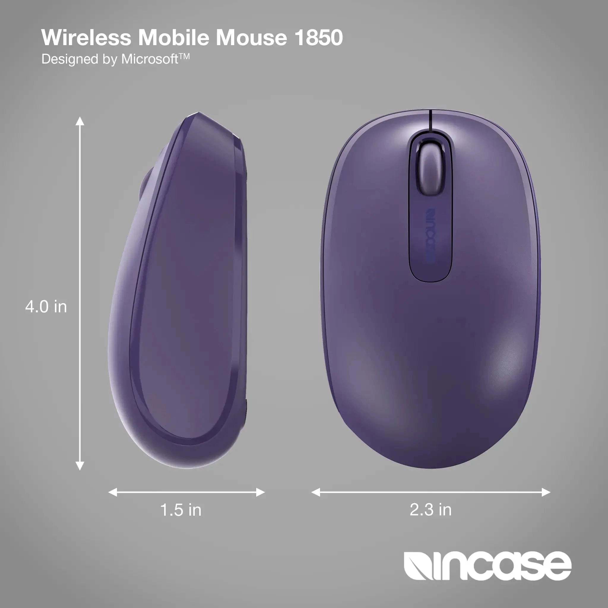 Comfortable, colorful, portable. The Wireless Mobile Mouse 1850, Designed by Microsoft™, is made for life on the go. With built-in transceiver storage and a comfortable, ambidextrous design, its scroll wheel and compact silhouette make it ideal for creativity on your terms.