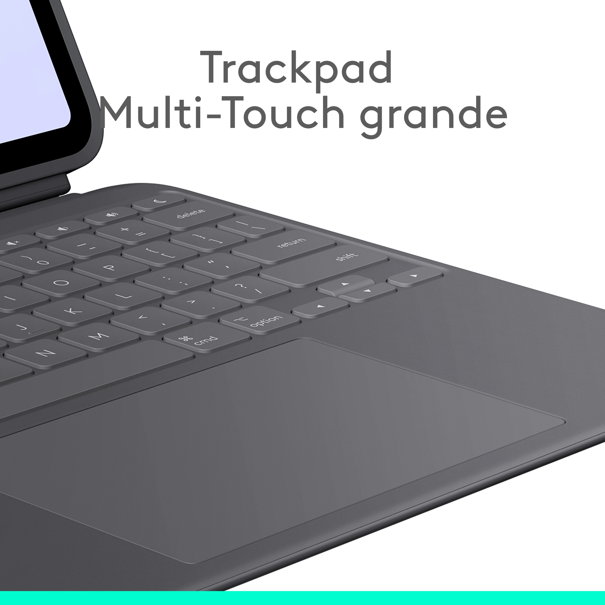 The biggest trackpad ever made for Combo Touch. Familiar Multi-Touch gesture controls let you swipe, pinch, double-tap, and more.