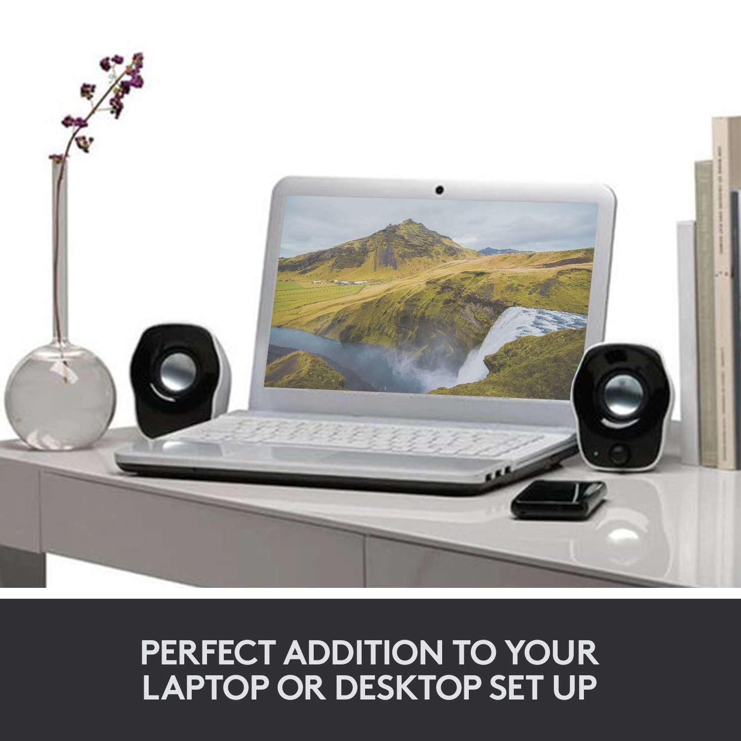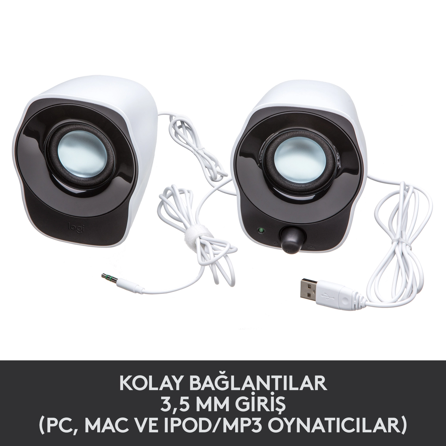 Logitech® Stereo Speakers Z120 make it simple to connect just about any audio source. They get power from the USB port on your laptop or netbook and receive audio through a standard 3.5 mm plug, like the headphone jack on your MP3 player. So it’s easy to enjoy your favorite music, videos and more. With integrated power and volume controls, it’s a snap to get the sound you want. The compact size doesn’t take up a lot of room on your table or desk, so it’s easy to move your speakers from room to room. And the cable management system helps eliminate cord clutter.