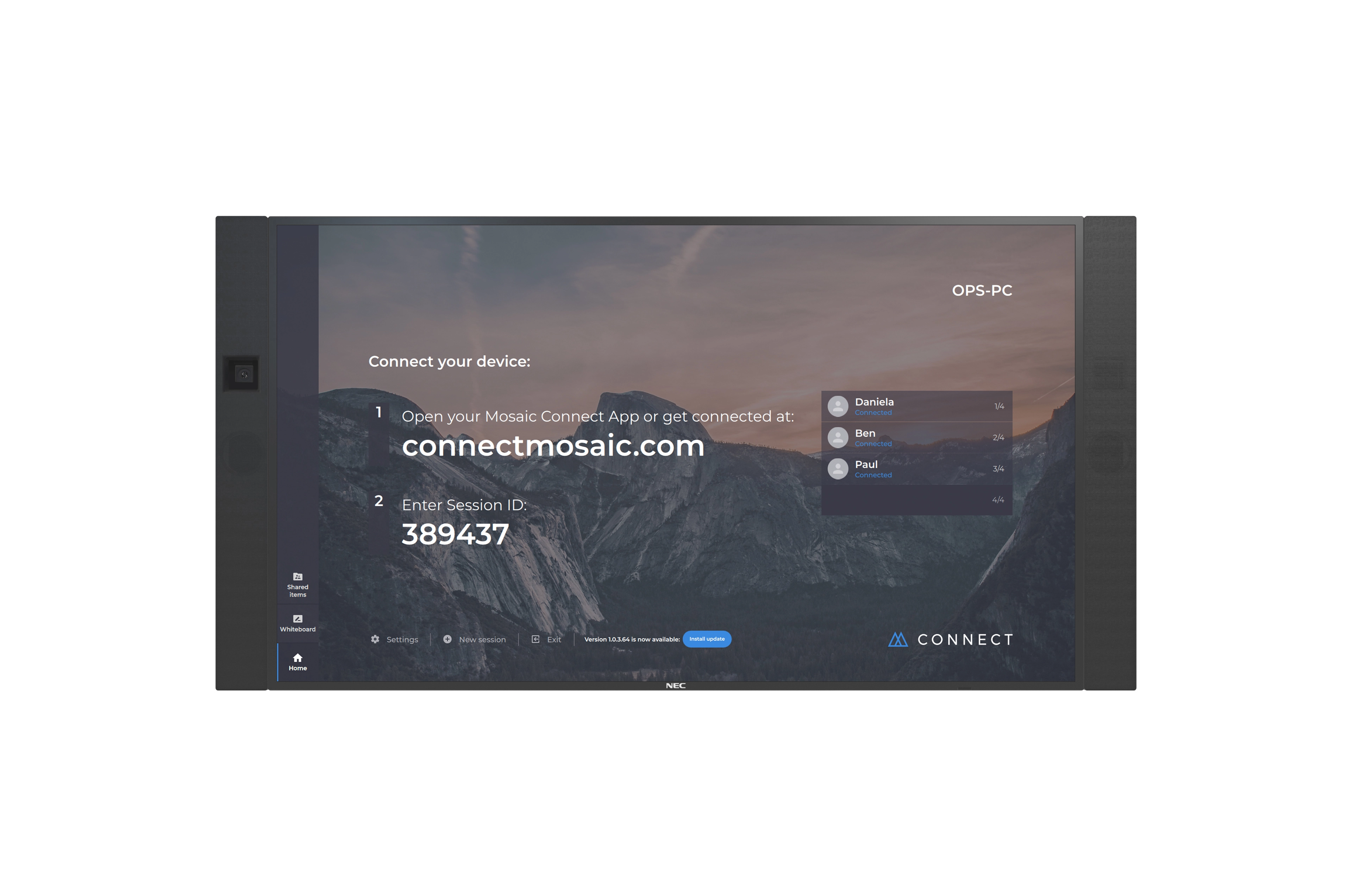 NEC InfinityBoard 2.1. Display diagonal: 190.5 cm (75"), Display brightness: 500 cd/m², Display number of colours: 1.073 billion colours. Operating system installed: Windows, Operating system version: 10 Pro, Processor frequency: 3 GHz. Speaker power: 40 W. Top Wi-Fi standard: Wi-Fi 5 (802.11ac), Wi-Fi standards: Wi-Fi 5 (802.11ac), Ethernet LAN data rates: 10, 100 Mbit/s. Product colour: Black, Panel mounting interface: 400 x 400, 400 x 600 mm, Certification: CE; EAC; EMC B; FCC; RCM; REACH; UL/C-UL
