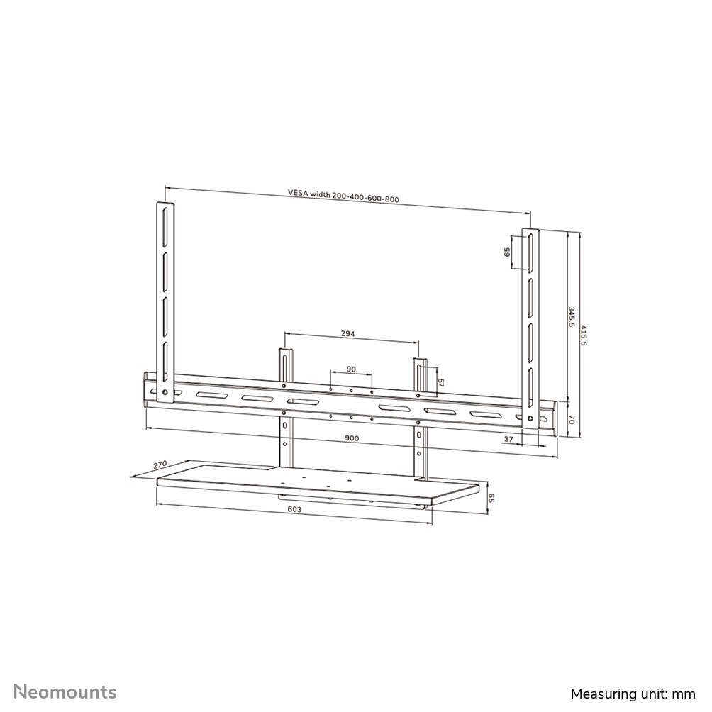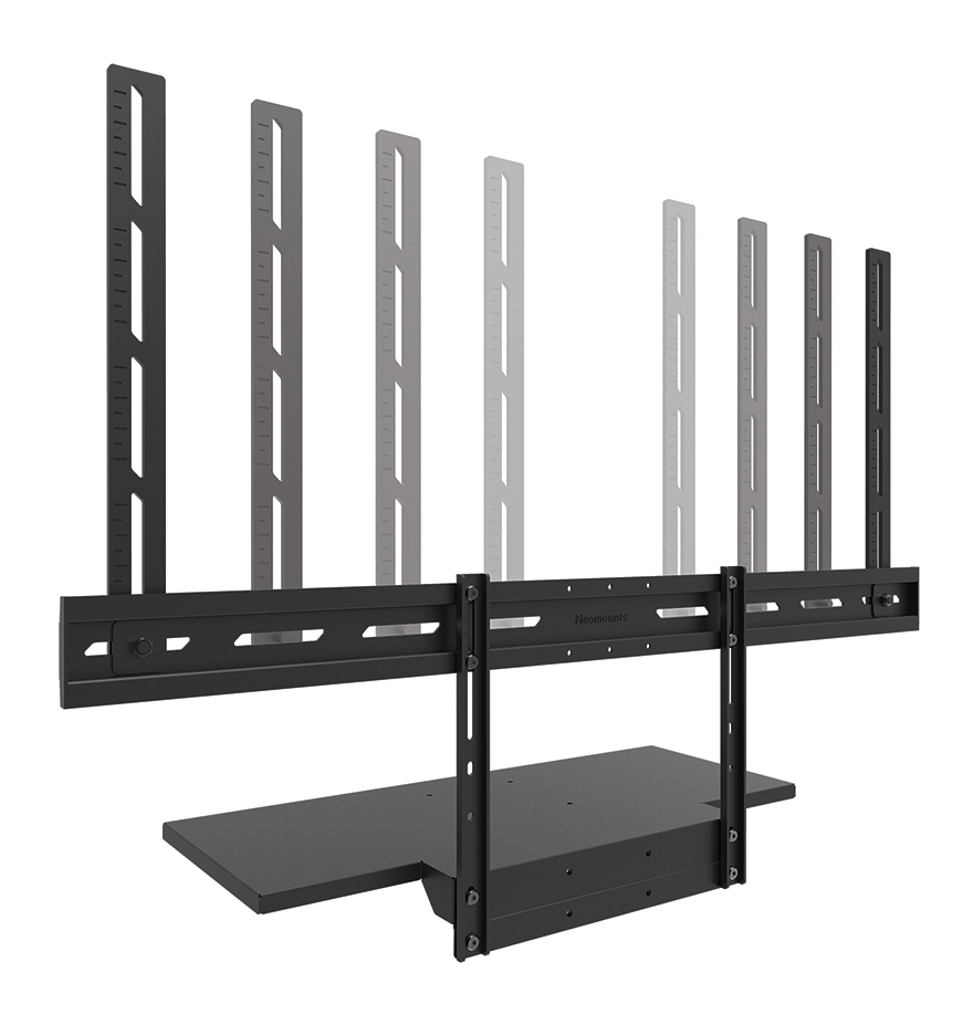 For optimal flexibility, both the shelf support and backplate brackets are height adjustable. The AV40-500BL mounting holes allow width and height variations, while the VESA frame adjusts in four positions (200/400/600/800). The kit is compatible with both wall and floor mounts. Installation is quick and straightforward, with ruler-guided alignment ensuring a precise and seamless fit.
