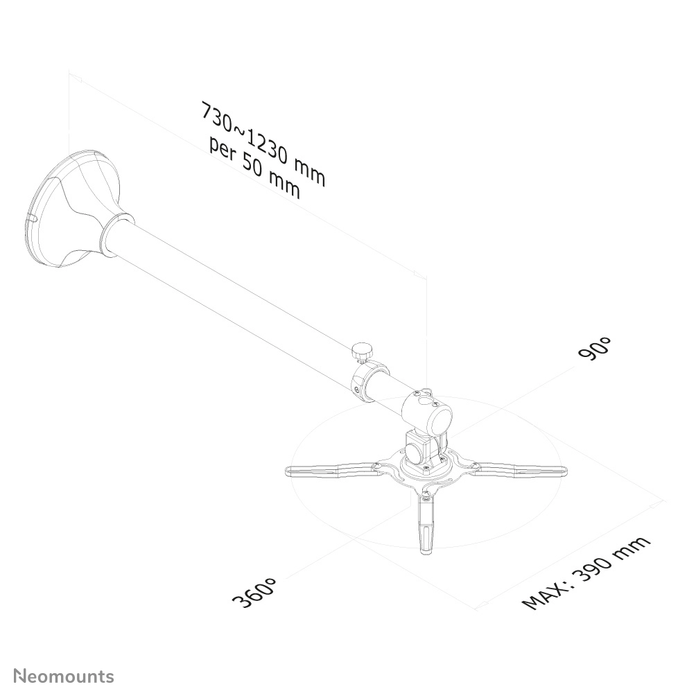 Neomounts by Newstar's versatile tilt (90°), rotate and/or swivel (360°) technology allows the mount to change to any viewing angle to fully benefit from the capabilities of the projector. The mount is depth adjustable from 73 to 123 centimetres. An innovative cable management conceals and routes cables from wall to projector. Hide your cables to keep the installation nice and tidy.