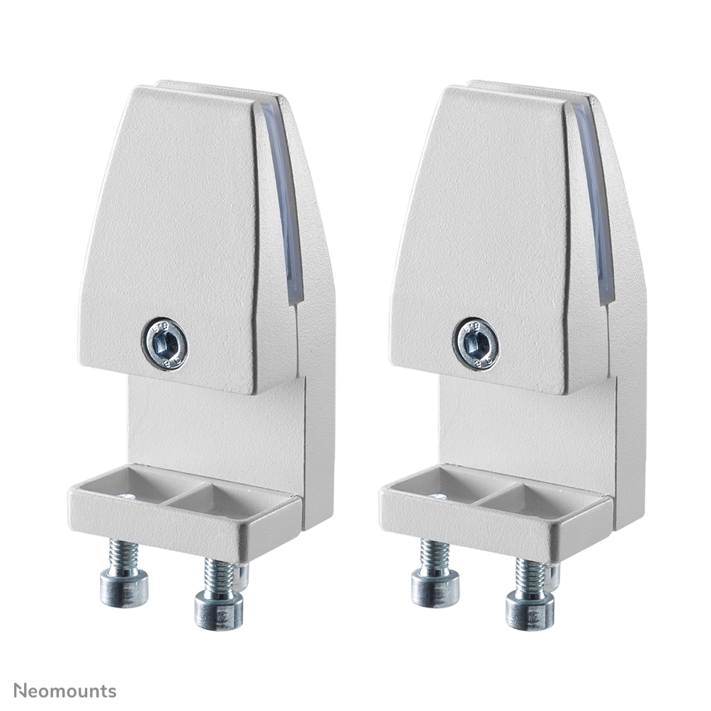 The Neomounts by Newstar NS-CLMP40WHITE is suitable for desks with a thickness of 8-25 mm. The clamps guarantee a solid and secure installation of i. a the NS-GLSPROTECT safety screens or any other suitable screen you want to attach onto the desk. The clamps are secured directly onto the desk and therefore move smoothly with the height adjustable desk.