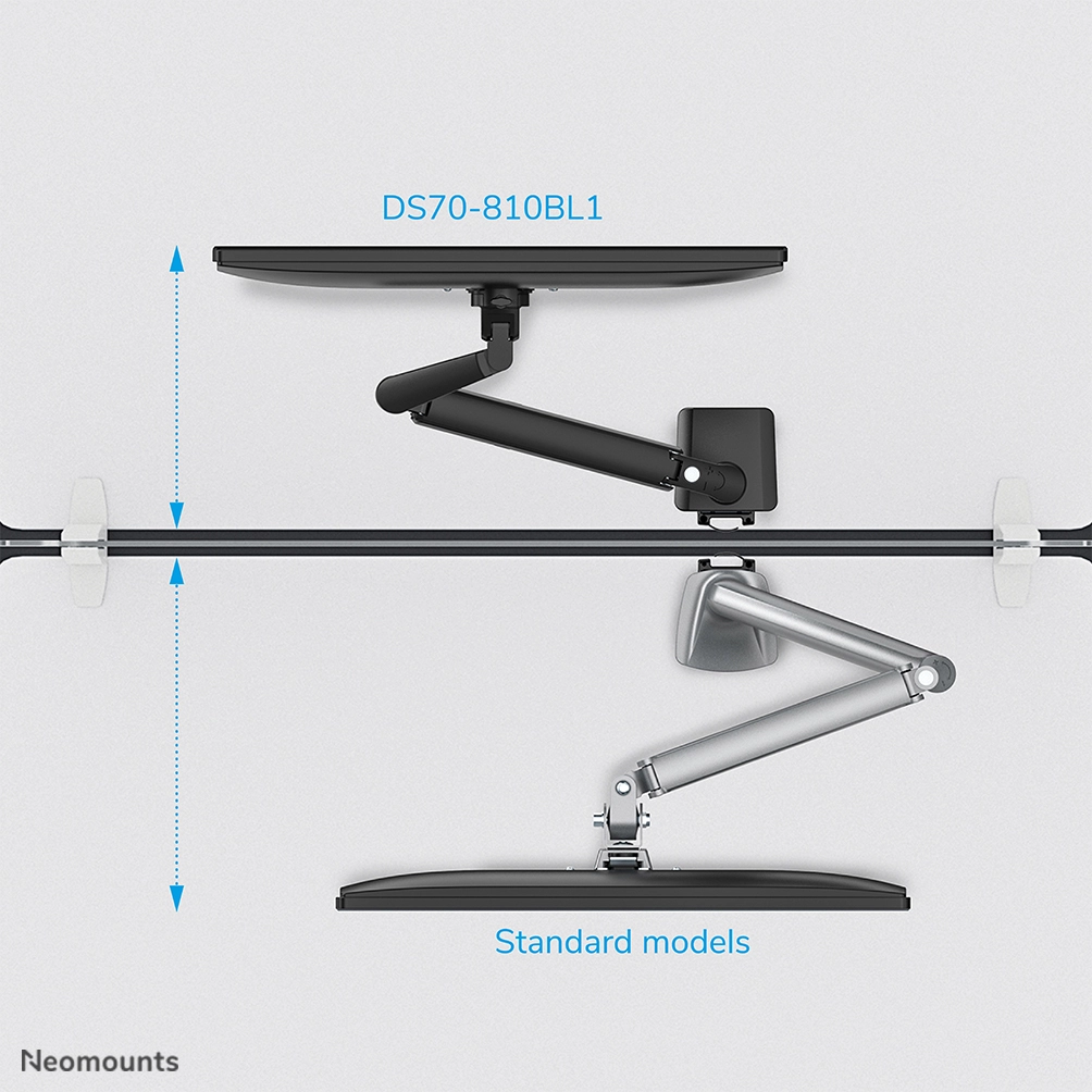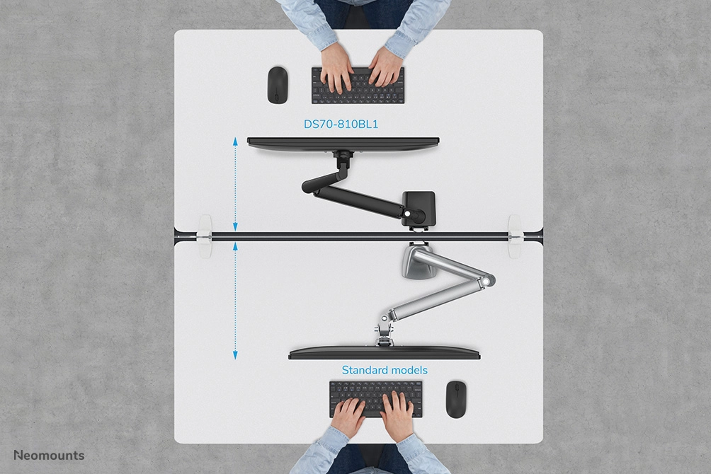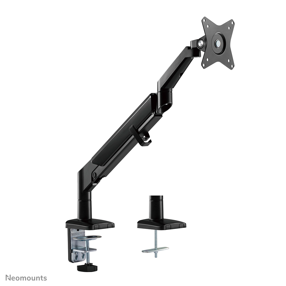 The DS70-810BL1 is suitable for screens that meet VESA hole pattern 75x75 or 100x100mm. Unused hole patterns can be covered using one of Neomounts by Newstar's VESA adapter plates. The DS70-810BL1 is equipped with an Quick-release VESA system for easy installation and comes with both desk clamp and grommet.