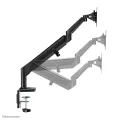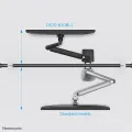 The Neomounts by Newstar DS70-810BL1 is a full motion desk mount for one flat screen up to 32" with a maximum weight capacity of 9 kg. The versatile tilt (90°), rotate (360°) and swivel (180°) technology allows the mount to change to any viewing angle to fully benefit from the capabilities of your screen. Additionally, the mount features gas spring height adjustment (26, 5-55 cm) and depth adjustment (0-49 cm), to create the perfect working position. Additionally, the DS70-810BL1 features the nifty 180° stop mechanism, that allows you to safely adjust the mount even when it's placed close to a wall or separation panel without making contact with the wall. The smart cable management clips ensure orderly routing of the cables.