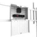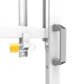 Designed with a sturdy structure, the MOVE Go XL offers the perfect solution for large and ultra-wide 105" (touch) screens. The floor stand offers manual height adjustment in 2 preset positions, ranging from 129 to 139 cm, ensuring optimal viewing heights. For extra security, the screen can be fixed in place by locking the brackets using a padlock (not included). Additionally, a multimedia shelf (front and back mountable, max. 10 kg) and lockable, ventilated hardware compartment with cable opening are included and optional for installation.