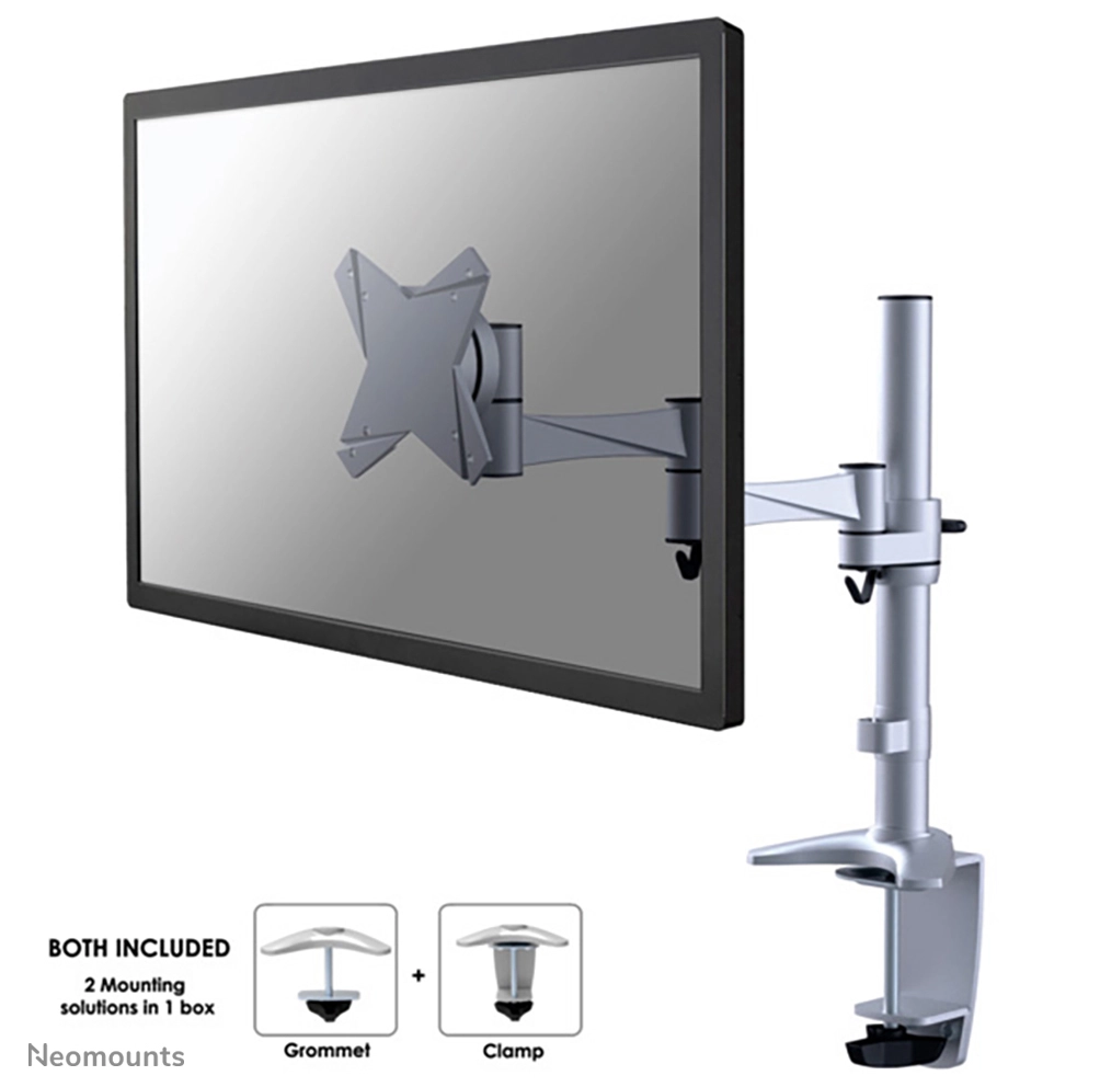 The Neomounts by Newstar desk mount, model FPMA-D1330SILVER is a tilt-, swivel and rotatable desk mount for flat screens up to 30". This mount is a great choice for space saving placement on desks using a desk clamp or grommet mount.