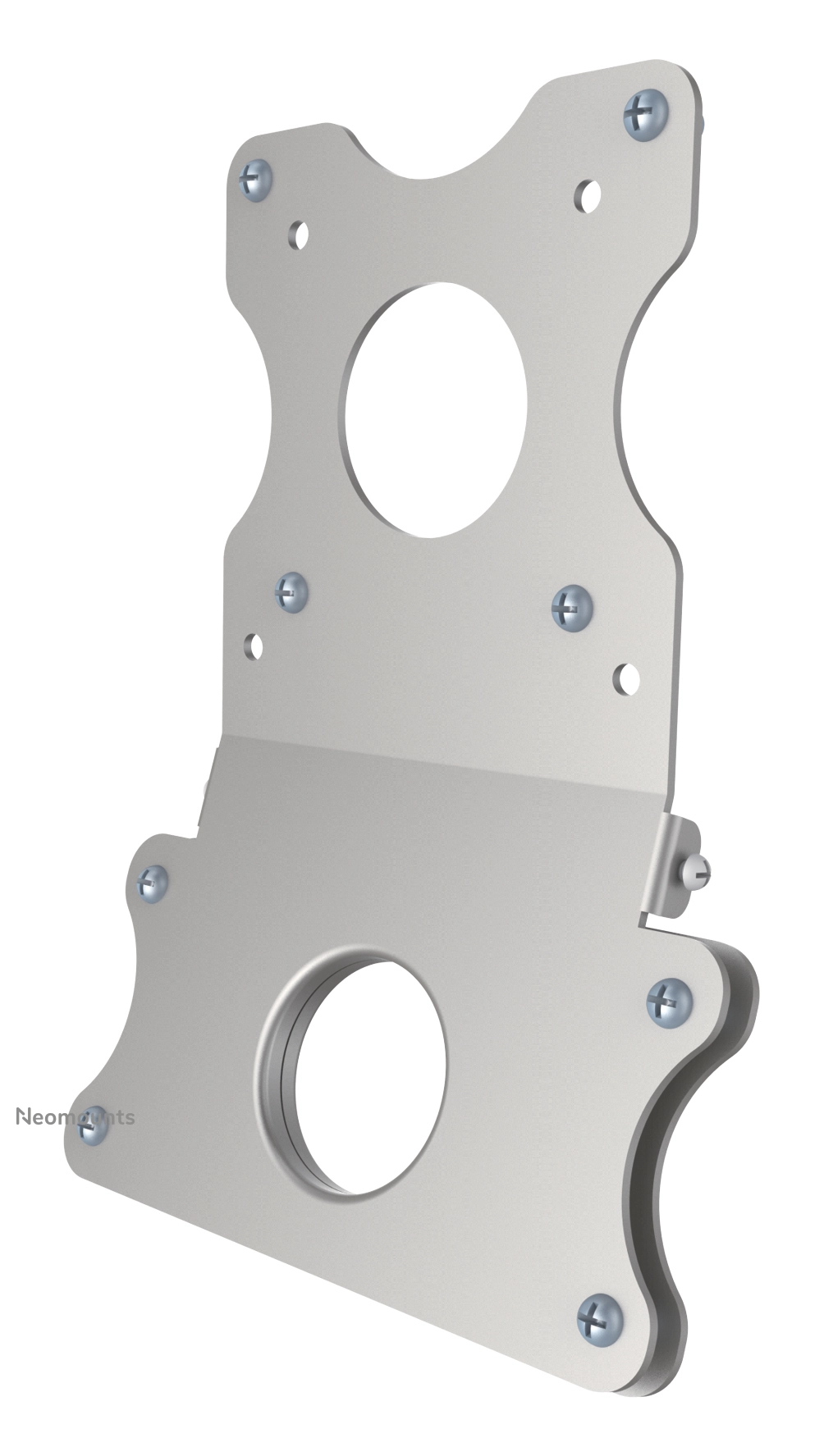 How does it work? Install this bracket to the existing iMac foot. Mount the adapter to any Neomounts by Newstar wall- or desk mount. This adapter offers a VESA hole pattern 75x75 and 100x100. Any mount with VESA75 or VESA100 can be combined with it. Look on our website for your desired support.