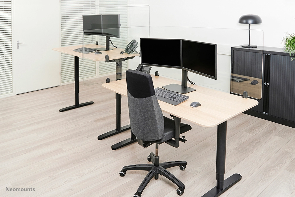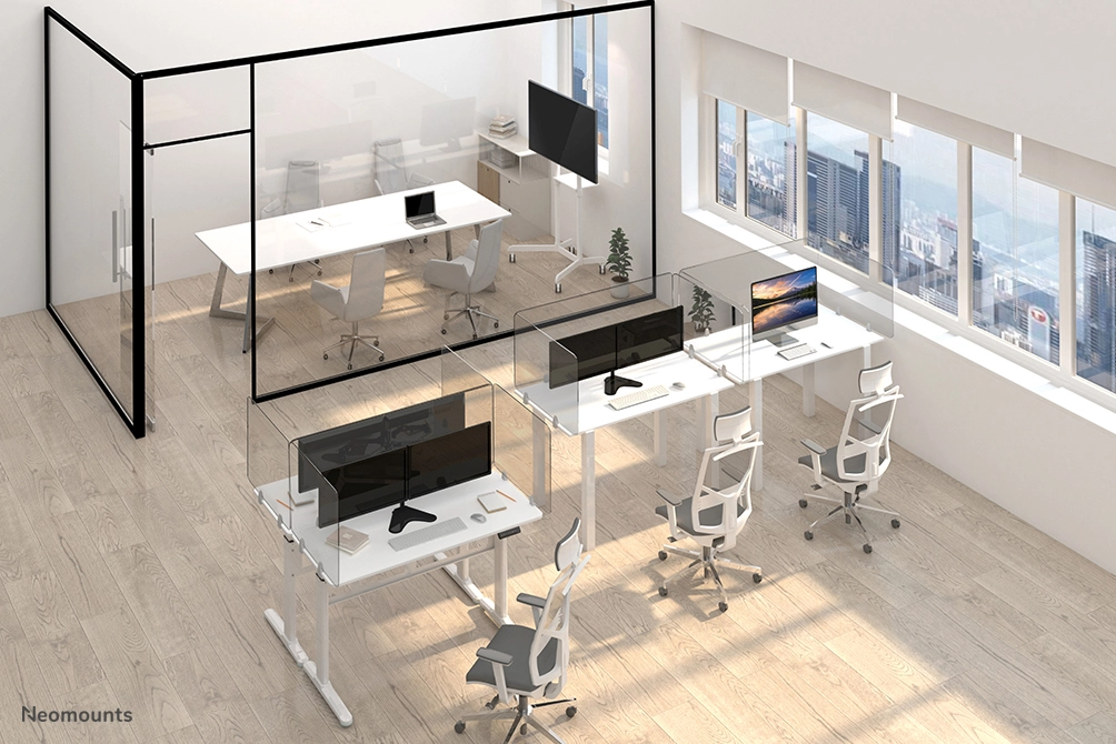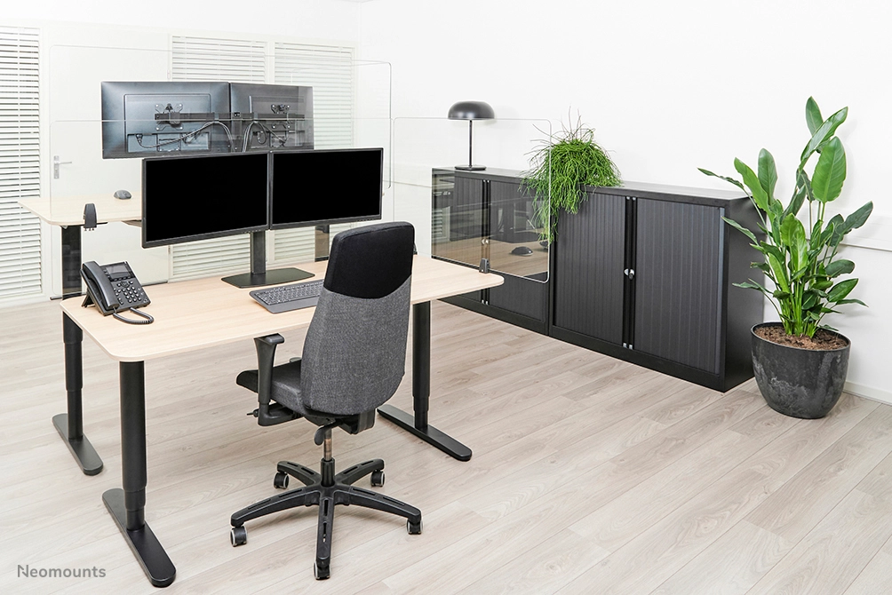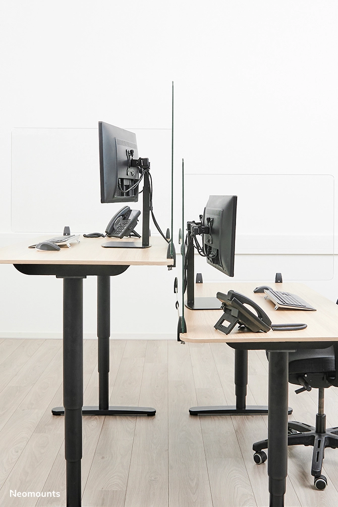 Neomounts by Newstar expands the recently introduced NS-PROTECT line with a new series; the NS-GLSPROTECT. Like the NS-PLXPROTECT products, the models in this high-end series offer a smart solution for a safer workplace in the new 1.5/ 2-meter society.
