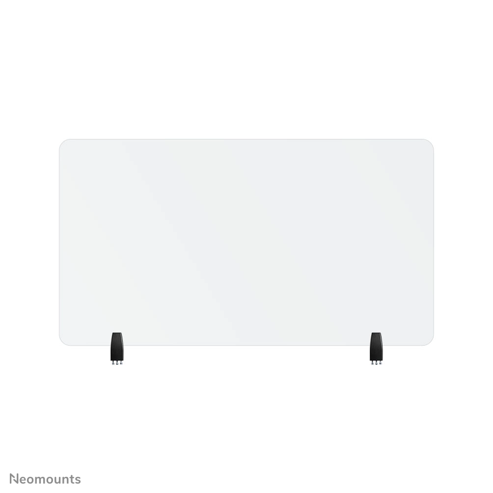 The NS-GLSPROTECT120 is 1, 2 m wide x 65 cm high and suitable for desks with a maximum thickness of 25 mm*. The screen is made of 6 mm laminated and tempered glass and has rounded corners and edges for extra safety. The screen can be easily installed onto the desk with 2 clamps and offers a durable and stylish solution for the new way of working. The screen comes with both white and black clamps as standard. The clamps guarantee a solid and secure installation onto the desk and move smoothly with the sit-stand workstation when it is adjusted in height.