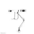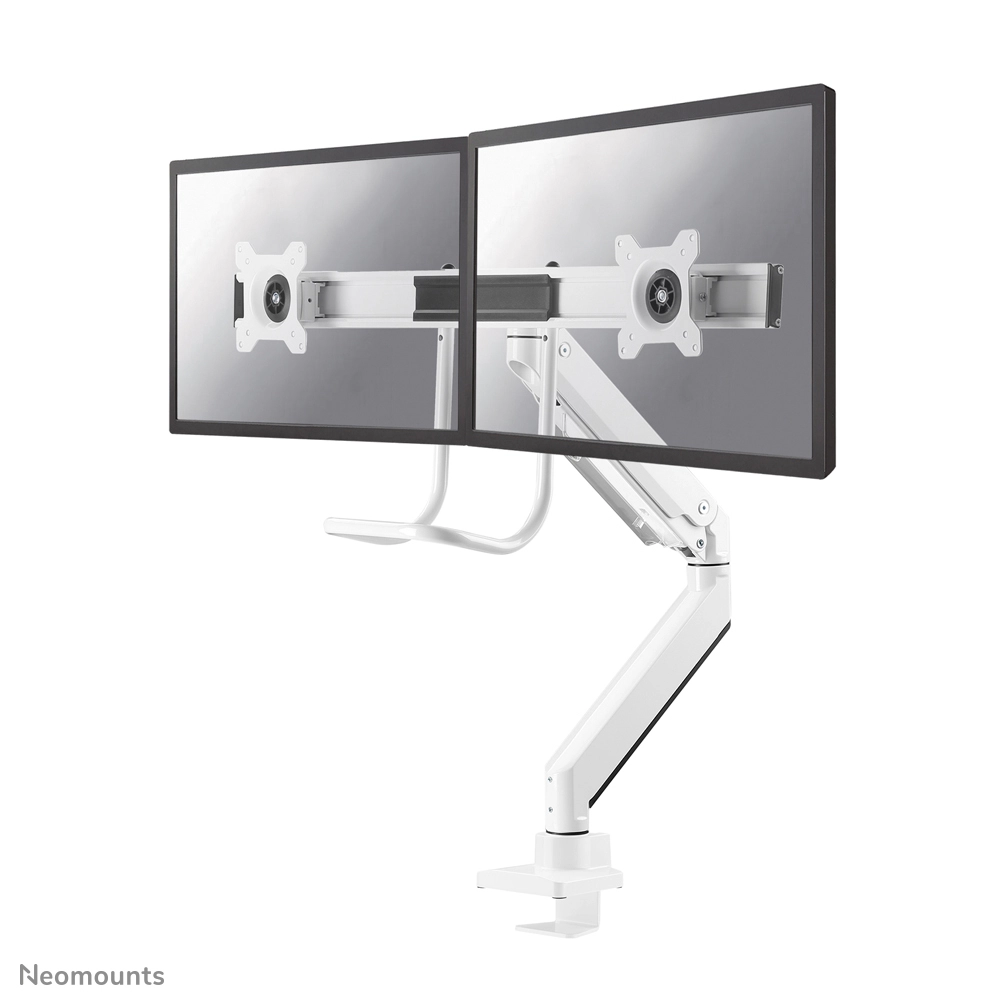 The Neomounts Select NM-D775DXWHITE is a tilt-, swivel and rotatable desk mount with crossbar and handle for 2 flat screens up to 32". This mount is a great choice for space saving placement on desks using a desk clamp or grommet mount.
