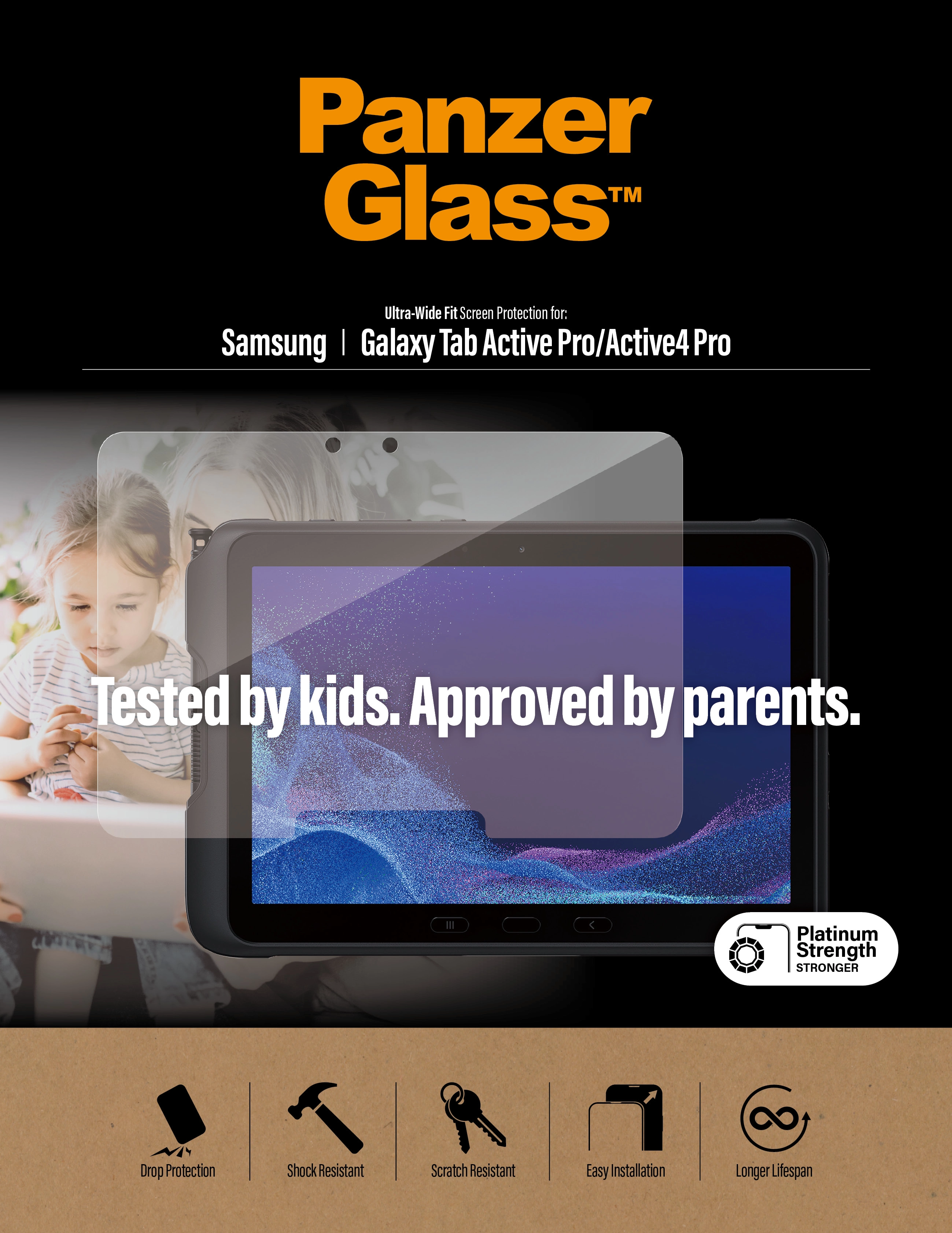 Protect your device from the hazards of everyday life with PanzerGlass®. Accidental bumps against sharp-edged table corners or crushing falls onto stone-hard floors are no match for this scratch and shock-resistant screen protector. It even has a smudge-free coating with antibacterial effect that reduces traces of fingerprints and kills up to 99.99% of all common surface bacteria. The screen protector is easy to apply and once installed, you’ll never again fear the sight of your device tumbling to the ground. This may never happen, but if it does, you’ll regret not having clicked “add to cart”.