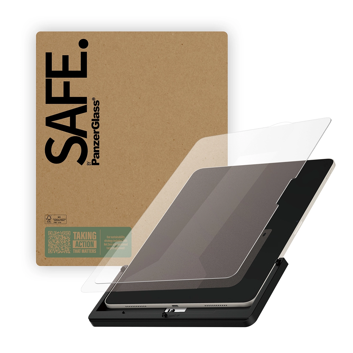 Keep your iPad safe from everyday mishaps, accidental drops, and pesky screen cracks with the original SAFE. by PanzerGlass® screen protector. Made from 60% recycled glass, the tempered glass acts as a discrete airbag, protecting your iPad by absorbing impact and providing a high level of scratch protection without compromising your iPad’s performance or design. Installation is a breeze with the new FastFit tool . Say goodbye to misalignment and dust intrusion. Simply place your iPad face-up, pull the tab, and enjoy a flawless installation every time. This Ultra-Wide Fit screen protector covers the entire front surface of your iPad, providing a crystal-clear view while leaving room for a case. It even has a smudge-free coating that reduces traces of fingerprints and grease. And if you want 360-degree protection, combine the screen protector with a case from CARE by PanzerGlass® . Once the screen protector is installed, you’ll never again fear the sight of your iPad tumbling screen-first. This may not happen, but if it does, you’ll regret not having clicked “add to cart”. Keep your iPad SAFE.