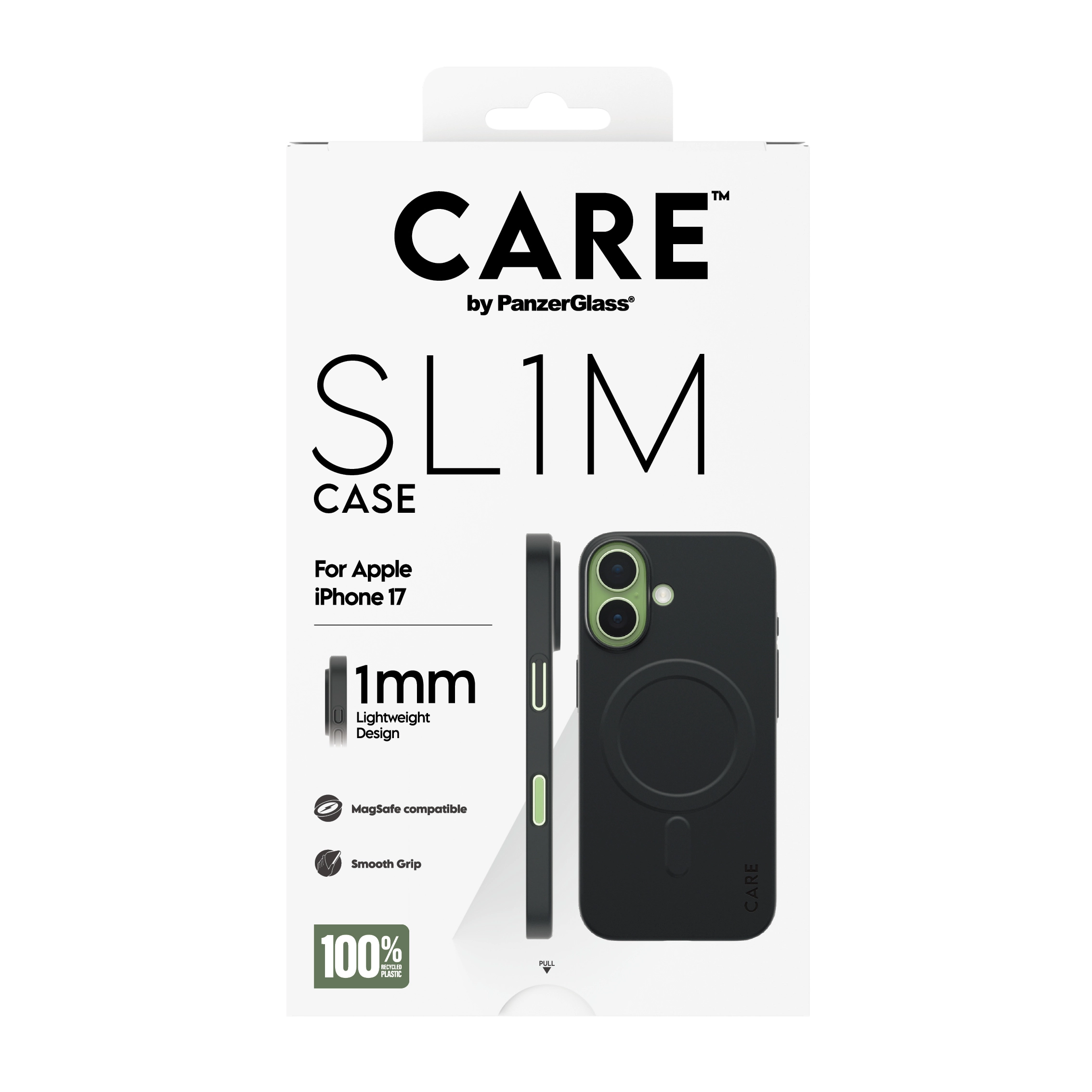 Introducing our thinnest case ever: SL1M. The new super-slim CARE™ by PanzerGlass® case for iPhone is a mere 1 millimeter thick - that’s it! And yet, it’s still Mag-Safe compatible and features enhanced camera protection. Made of 100% recycled plastic, this case is treated with our unique Nanotech-enabled smart coating that’s sweat and make-up resistant. It also comes with our 1 year anti-yellowing guarantee. So say good-bye to bulky covers that yellow with time and say hello to slim-fitting, heavy-duty protection that keeps your lifeline to the world safe from drops, shocks, and scratches without hiding your phone’s beautiful, sleek design behind a clunky case. l DARE TO CARE. CARE™ is a playful and protective international tech and lifestyle brand featuring a range of products created using the highest quality materials and influenced by fashion, art, and music. We care about people and the world we live in. We care about sustainability and self-expression. And we care about tech and extending its lifetime. So protect your tech in style and show the world you CARE.