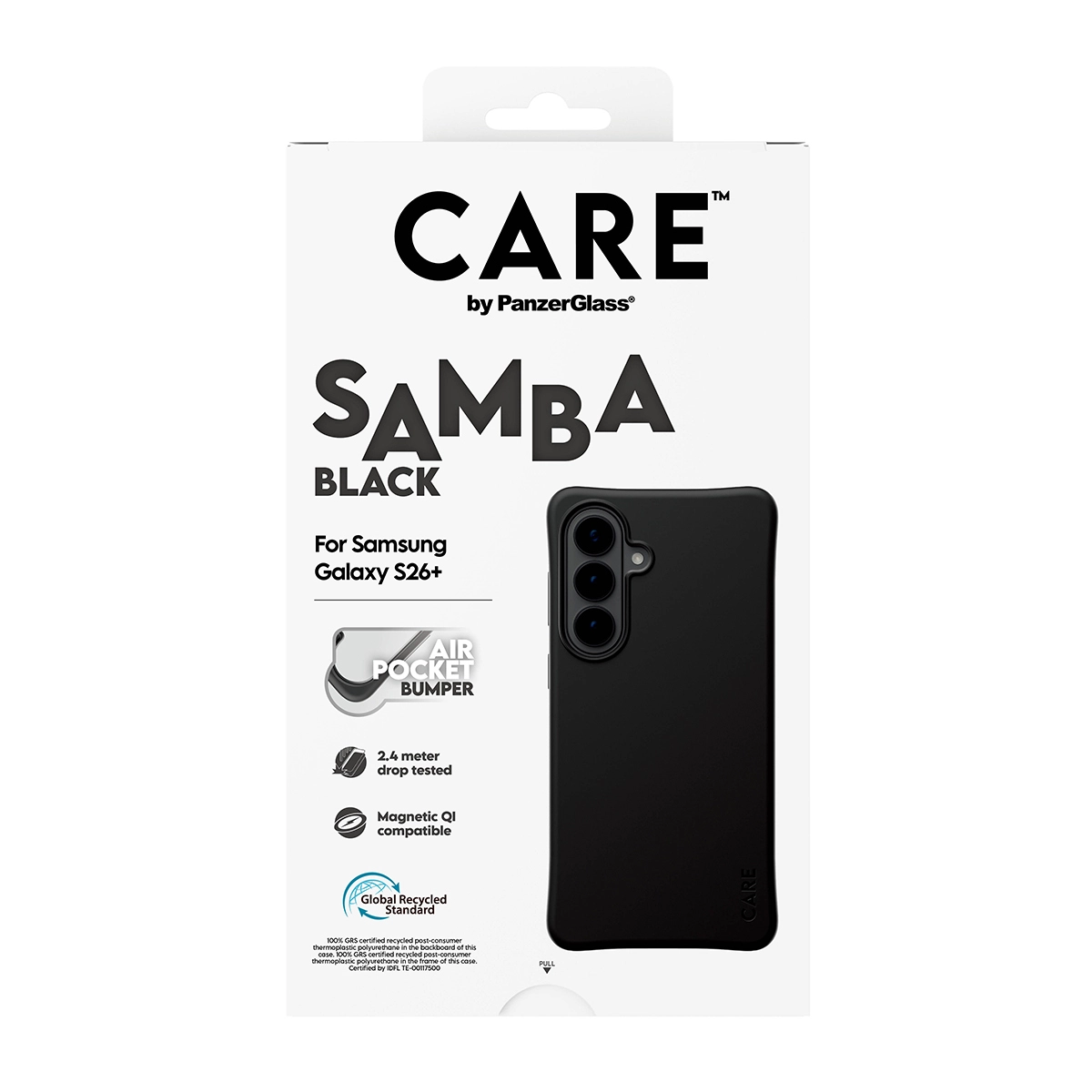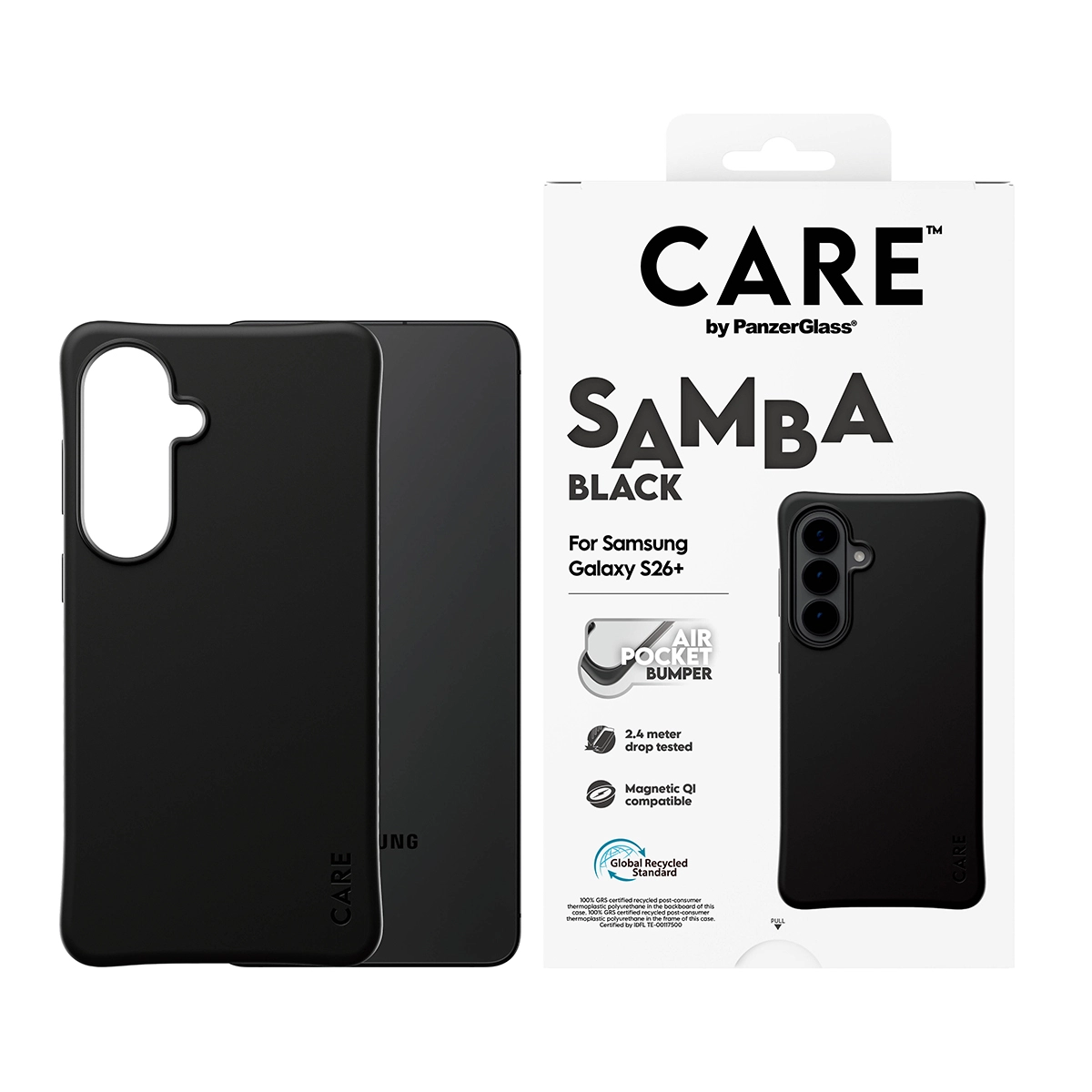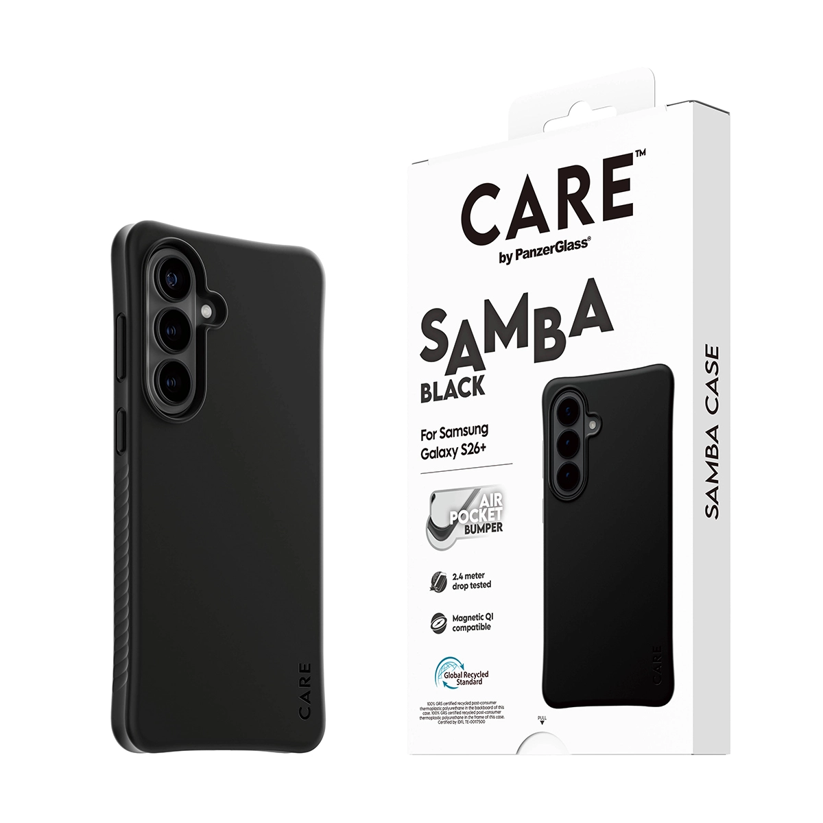 Protect Your Tech in Style Elevate your phone’s look while keeping it protected with the Fashionable SAMBA Case from CARE by PanzerGlass®. Designed to be both stylish and sustainable, this case is made from 100% recycled TPU and features enhanced corner protection to protect against everyday bumps and drops. The smooth grip ensures unmatched comfort, making it as functional as it is fashionable. Seamlessly Qi compatible, this case ensures your device stays charged and ready, without compromising on style. Whether you’re accessorizing for the day or powering up on the go, this case has you covered with flawless connectivity to all your Qi accessories. DARE TO CARE CARE is a playful and protective international tech and lifestyle brand featuring a range of products created using the highest quality materials and influenced by fashion, art, and music. We care about people and the world we live in. We care about sustainability and self-expression. And we care about tech and extending its lifetime. So protect your tech in style and show the world you CARE.