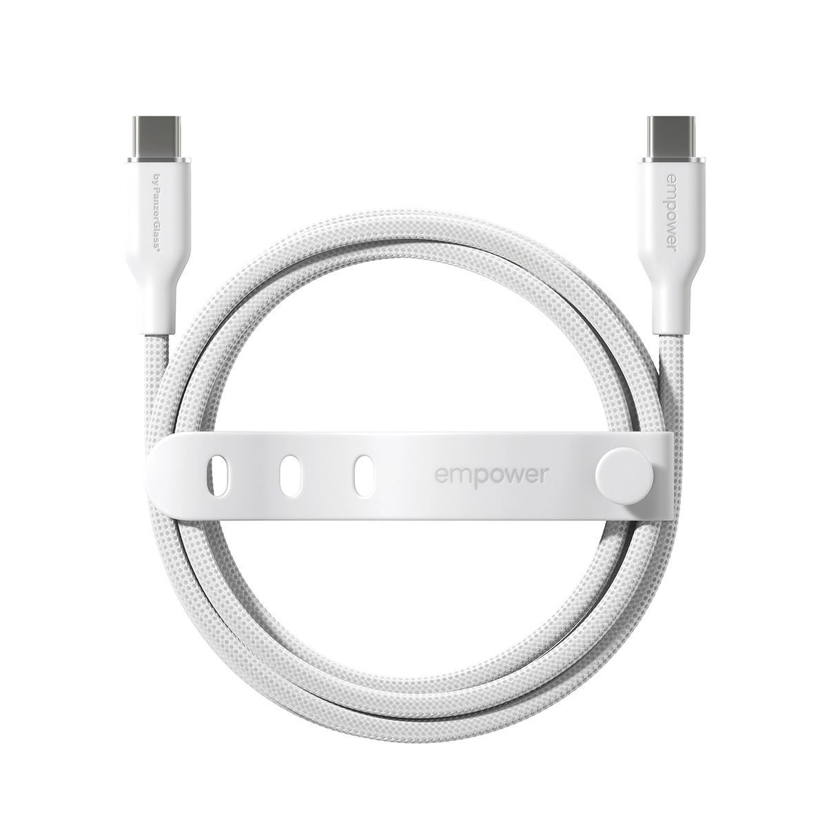 The empower by PanzerGlass® Racing USB-C to USB-C Cable features an ultra-soft and durable silicon interior paired with a braided outer cable sheath for durability and a premium feel. Convenience is key. Keep the cable organized when not in use with a handy strap. And the best part? It's made from 100% post-consumer recycled (PCR) materials.