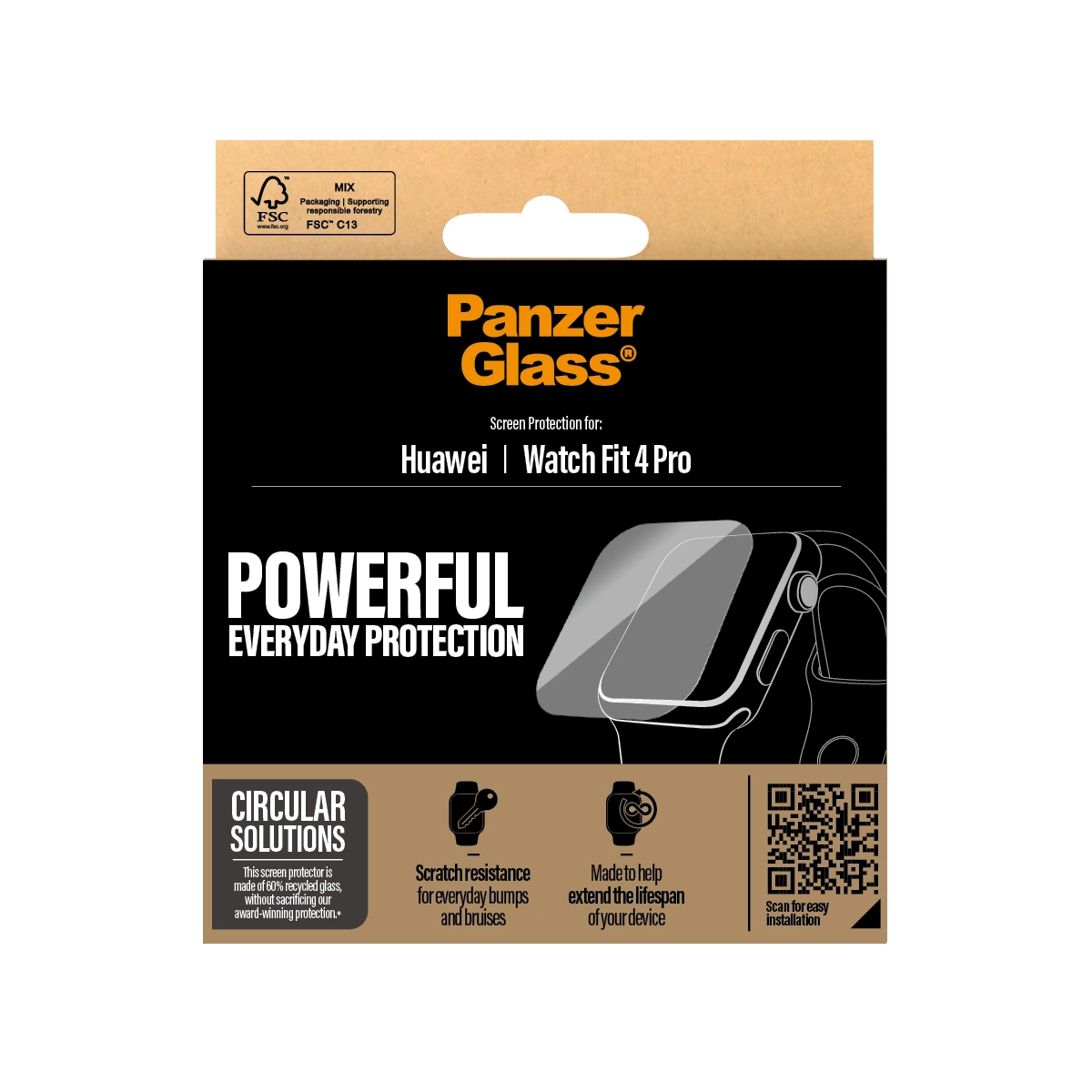 The glass covers the screen and comes in FSC™-labelled packaging that can be recycled.