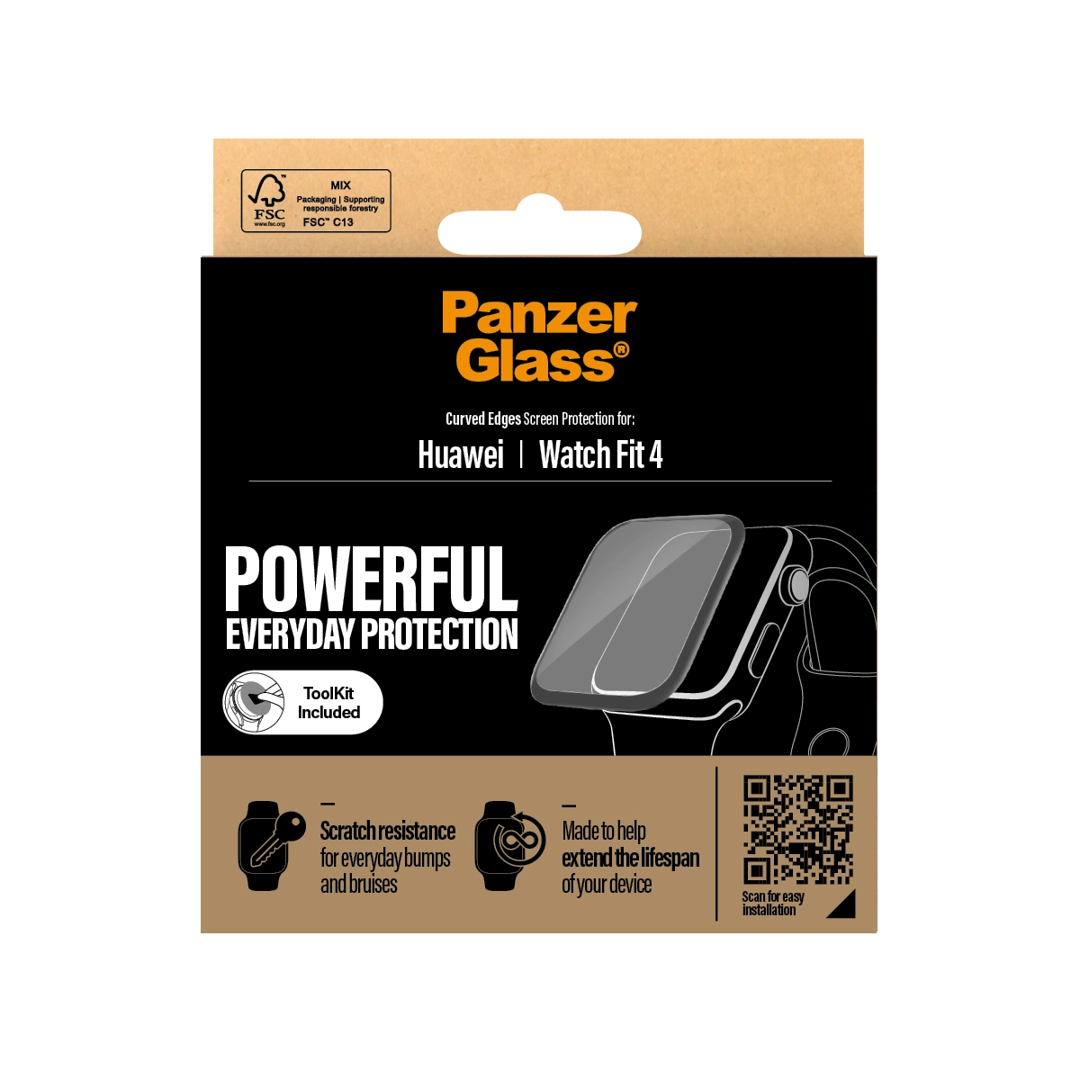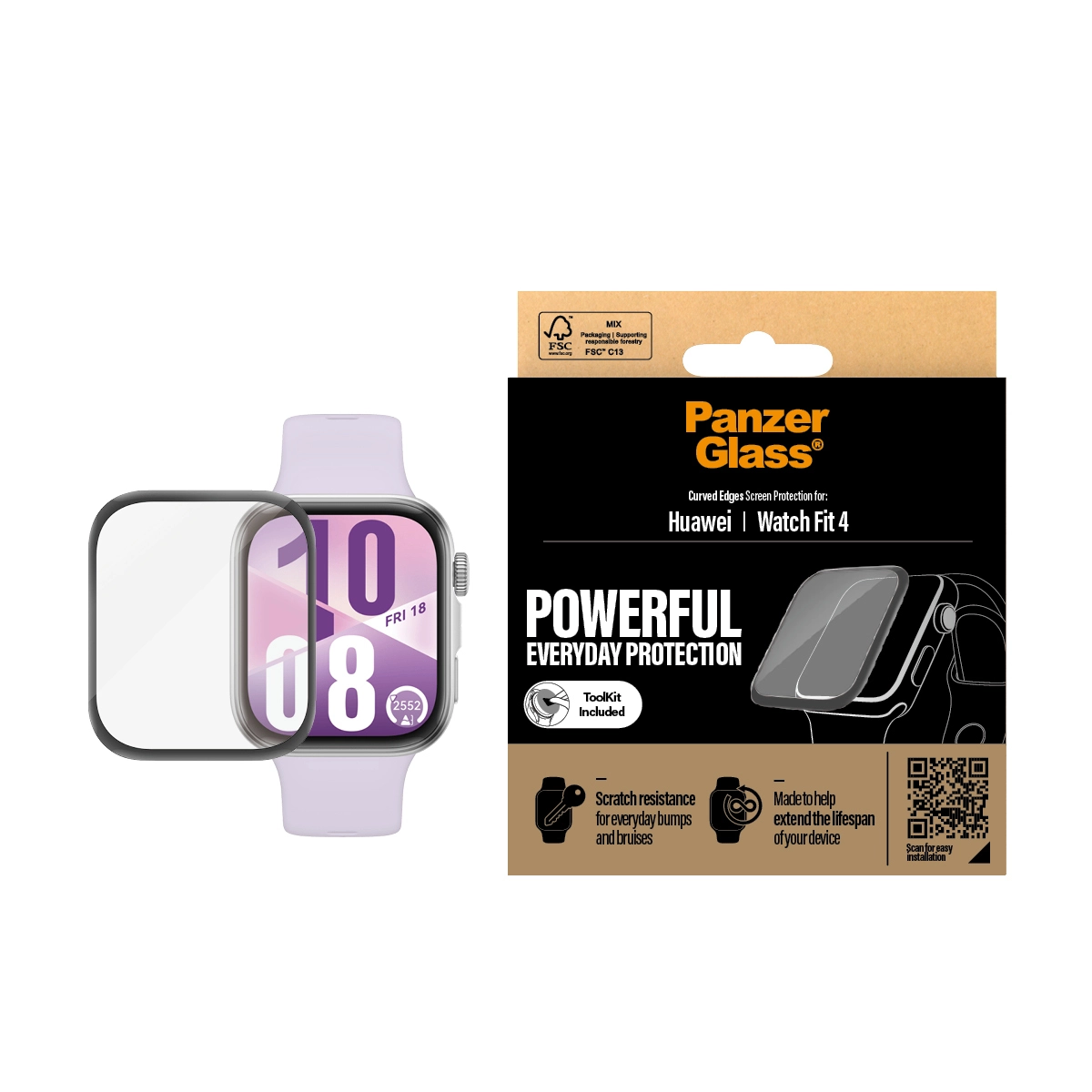 The glass covers the screen and comes in FSC™-labelled packaging that can be recycled.