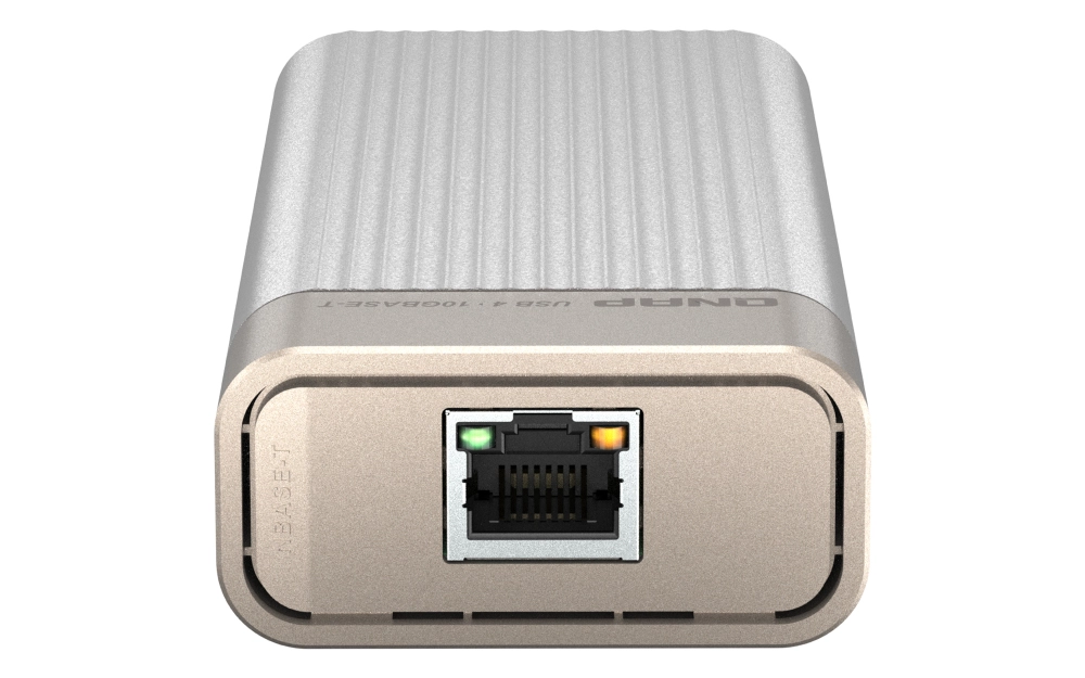 Simply connect a QNA-UC10G1T to your Mac® or Windows® computer using the included USB 4 cable, and connect the adapter to a 10GbE switch, NAS, or other 10GbE device using an RJ45 Cat 5e, Cat 6, Cat 6a (or above) cable, or an SFP+ DAC cable.