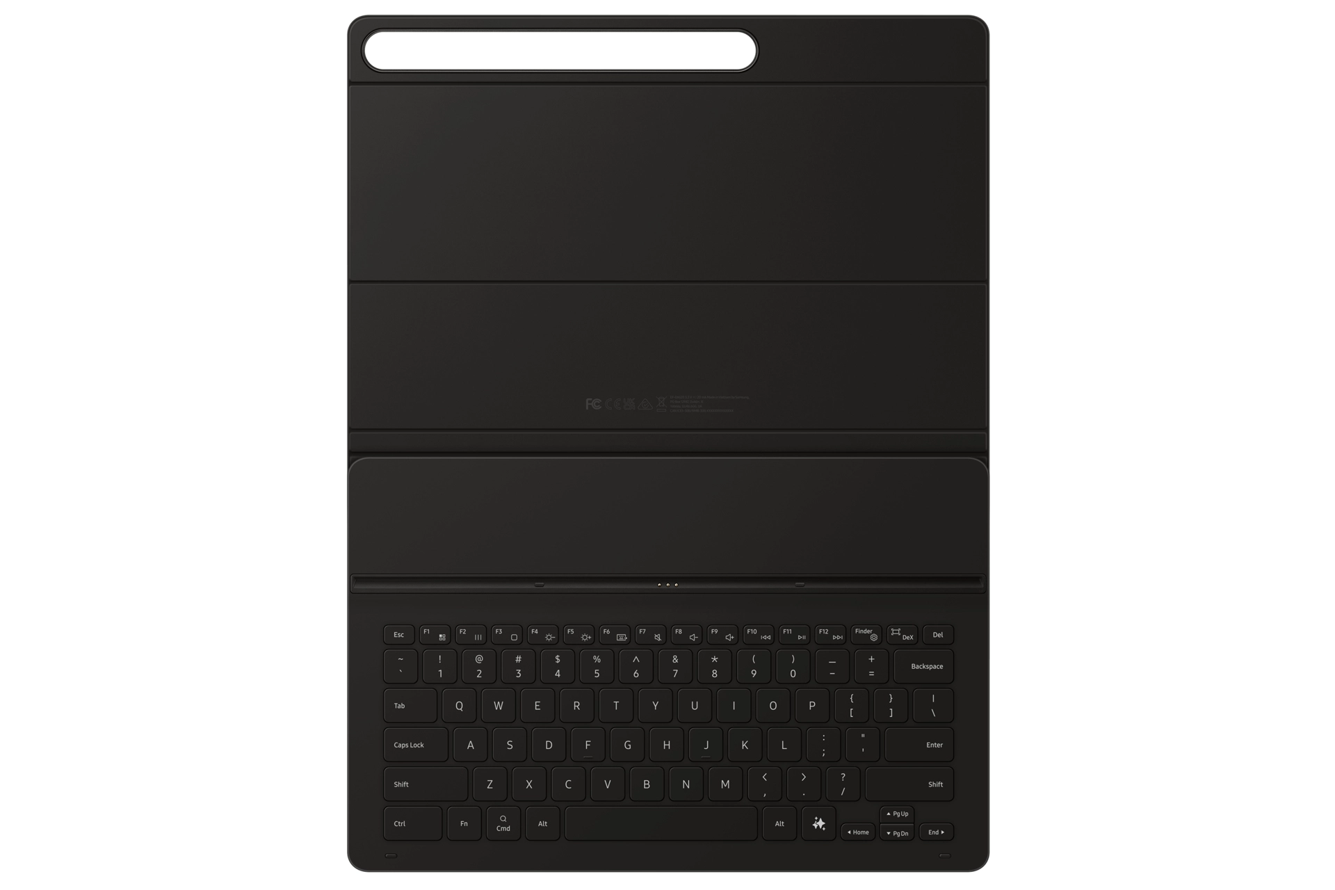 Samsung EF-DX620. Keyboard layout: QWERTY. Brand compatibility: Samsung, Compatibility: Galaxy Tab S10 FE+, Product colour: Black. Connectivity technology: Docking, Device interface: Pogo Pin. Power source: Dock. Width: 196.7 mm, Depth: 13.1 mm, Height: 301.3 mm