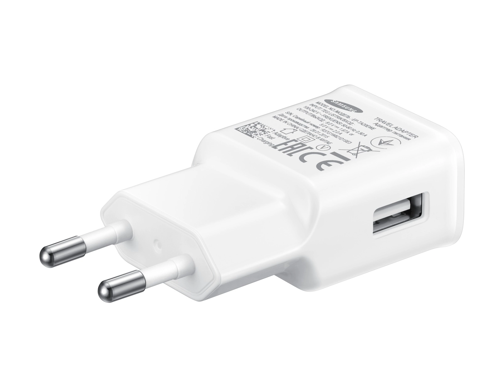 Samsung EP-TA20EWENGEU. Charger type: Indoor, Power source type: AC, Charger compatibility: Universal. Input voltage: 100 - 240 V. Product colour: White