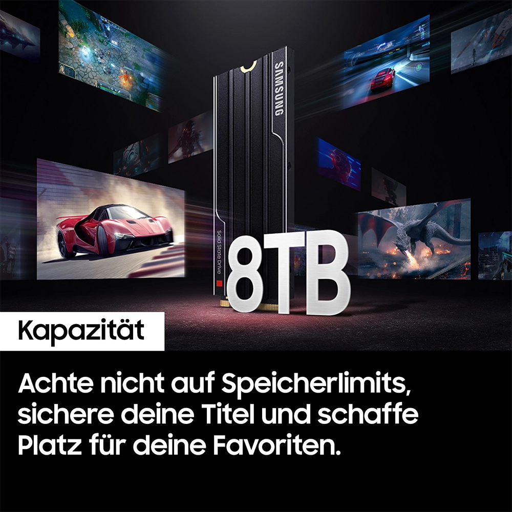 Secure victory with the immense 8TB capacity. 9100 PRO with Heatsink delivers huge space to expand your ever-growing game library. Break free from storage constraints and keep all your favourite game titles.