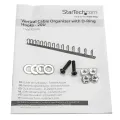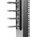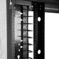 The cable manager uses a D-ring method of cable management to run cables vertically along the side of your rack, neatly guiding them between equipment that’s mounted at different heights. This provides a tidy and well-organized way to run cables from devices mounted toward the bottom of your rack to other devices mounted near the top, without leaving a mess of cables hanging in between.