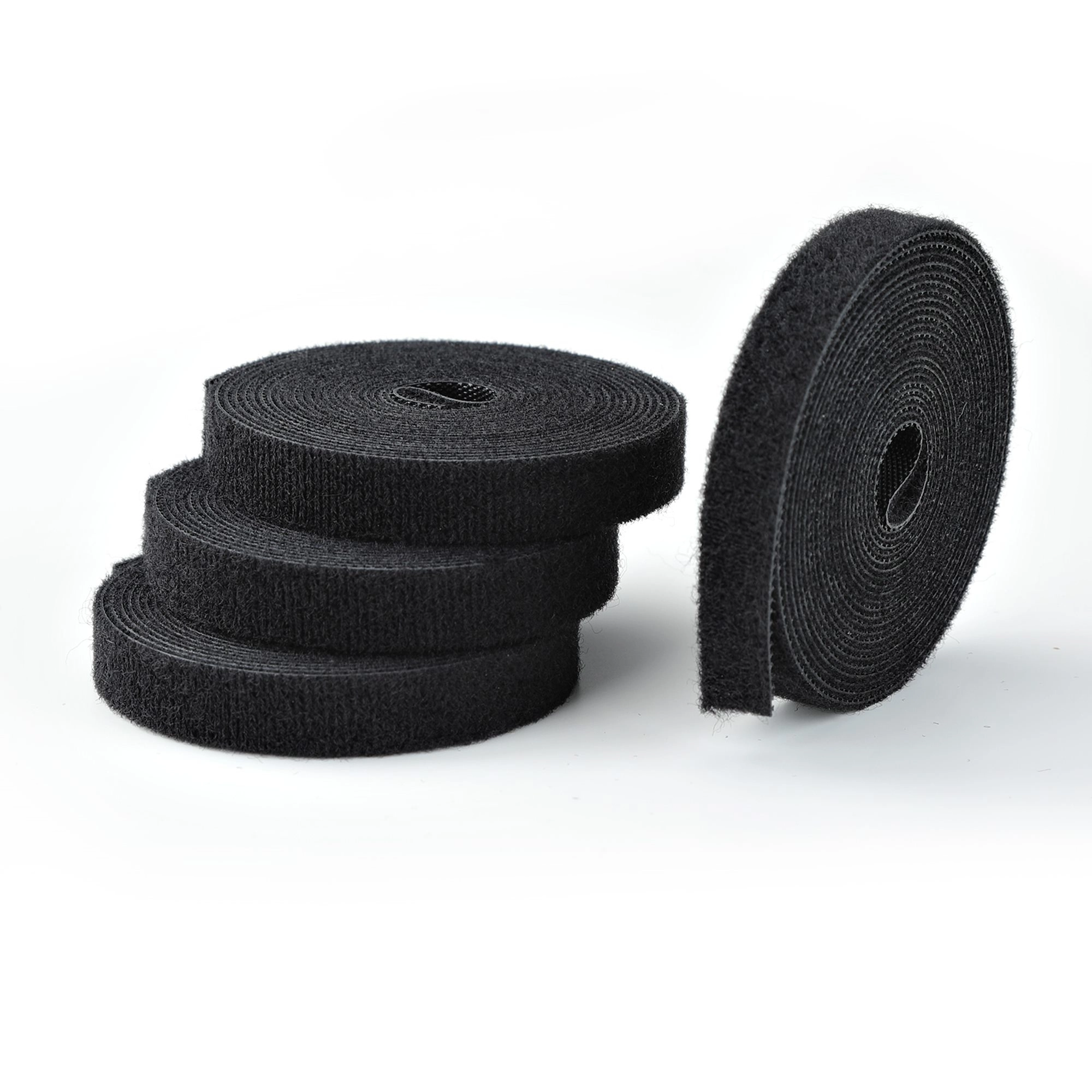 This 4-pack of 15 ft (4.6 m) hook-and-loop cable tie rolls provides a total of 60 ft (21 m), making it easy to keep your cables neat and tidy by binding them together or to a structure. The self-gripping fabric can be cut to any length and is 0.5 in (12.7 mm) wide, offering a slim, wrap-around solution for virtually any cable in any environment.
