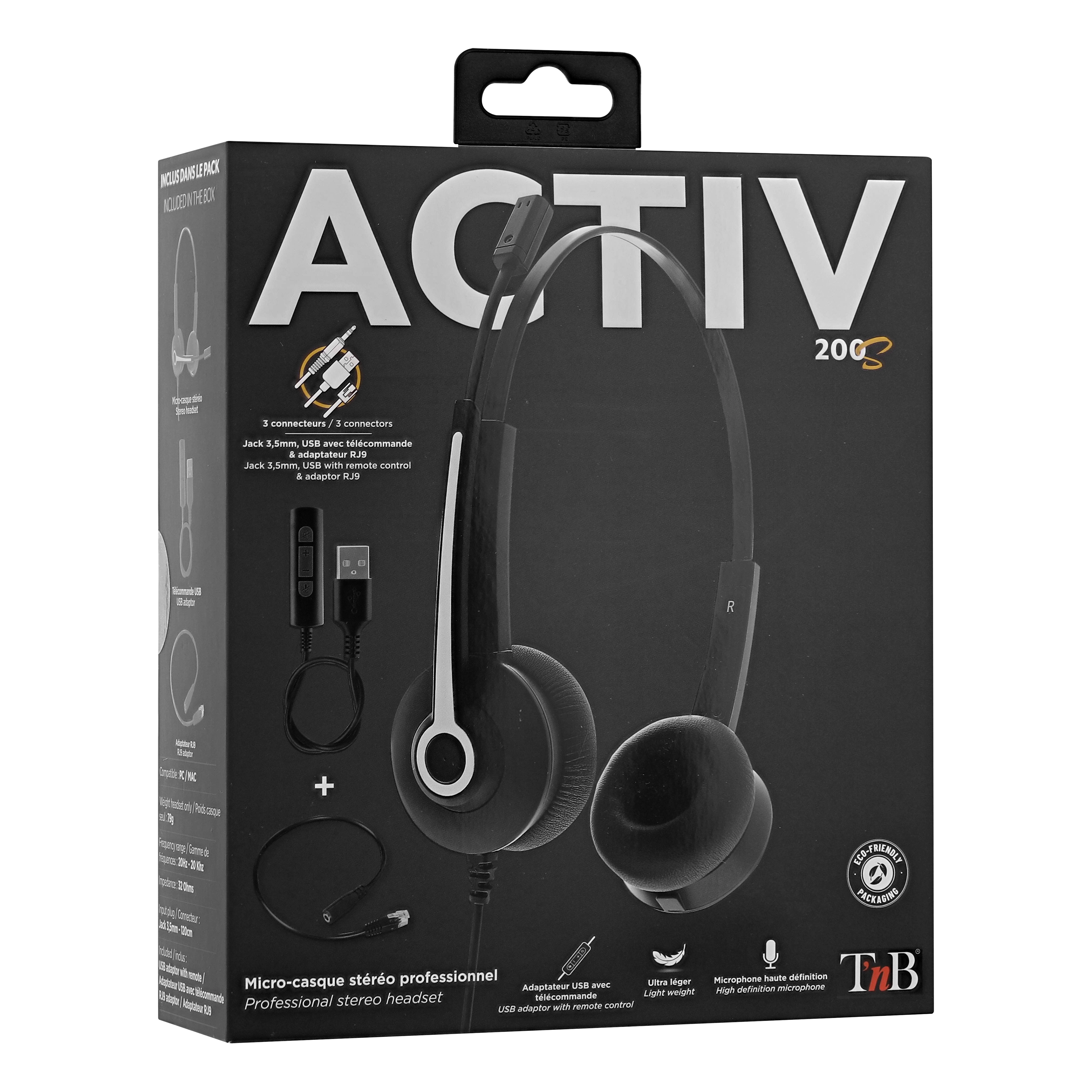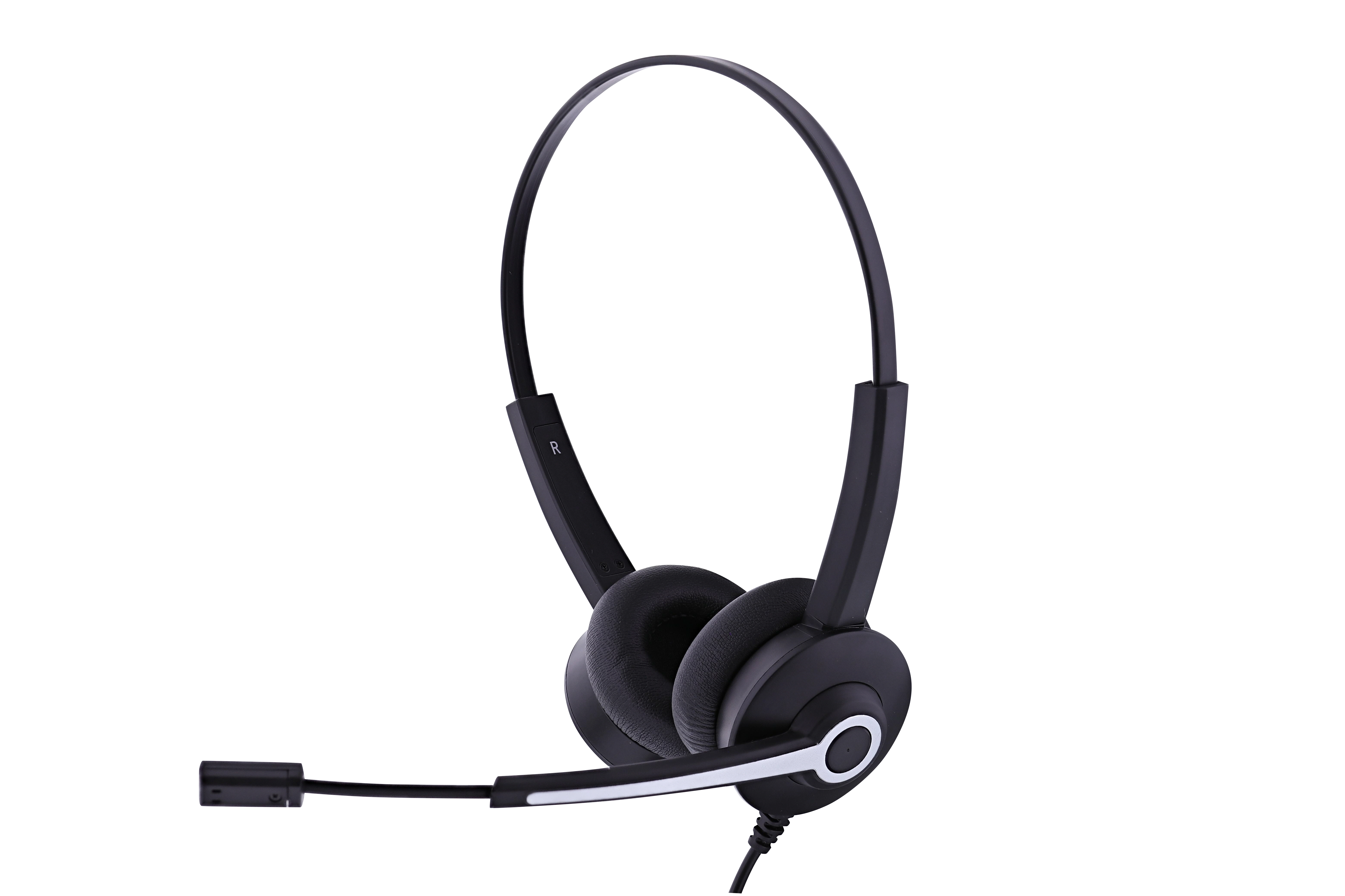 Wired 3.5 mm stereo jack headset with USB-A and USB-C remote control adapter. Slim and sleek design thanks to its ultra-light headband. 180° rotating ear cups for a custom fit. Comfortable ear cups with leatherette foam. Flexible, adjustable and foldable microphone stem for optimal positioning.