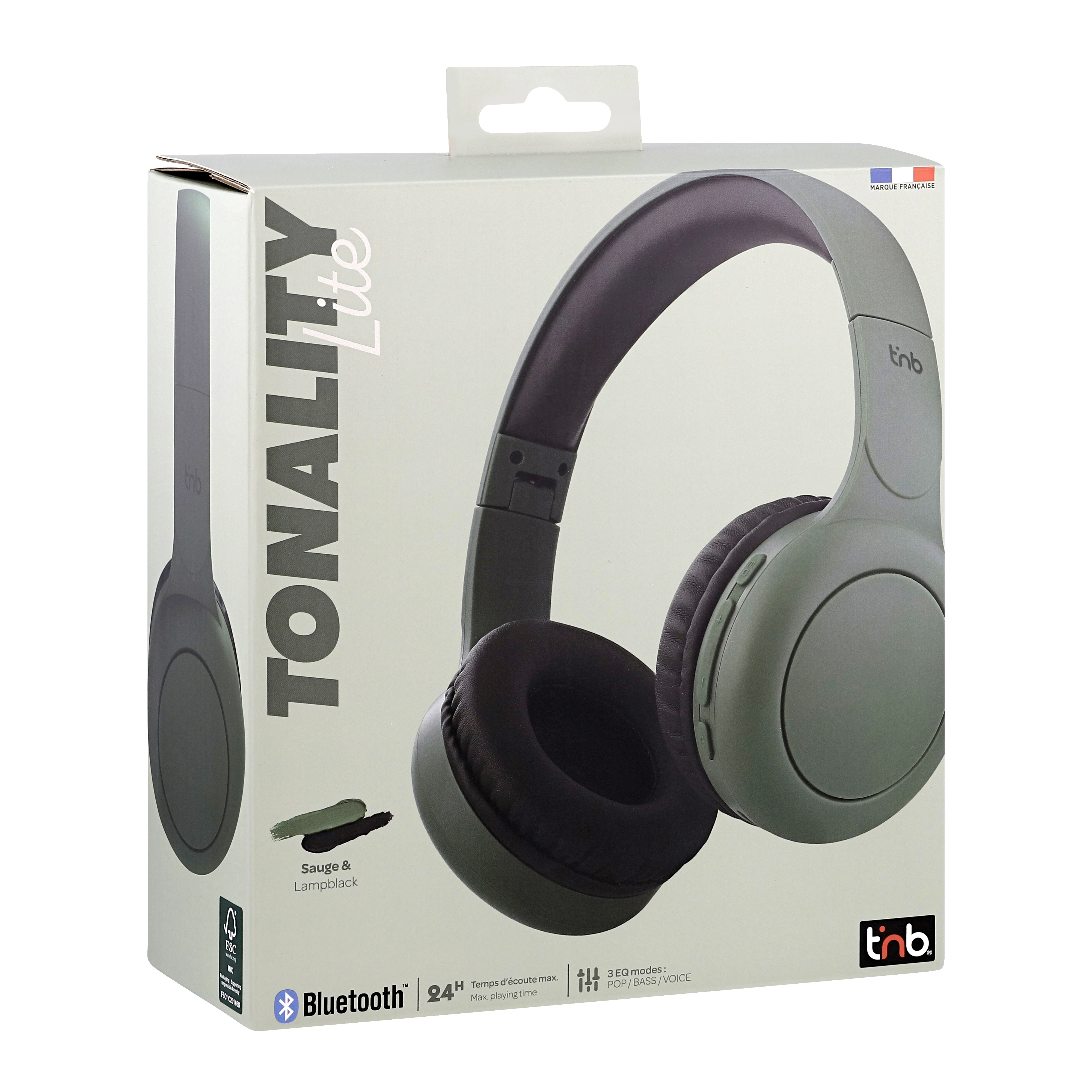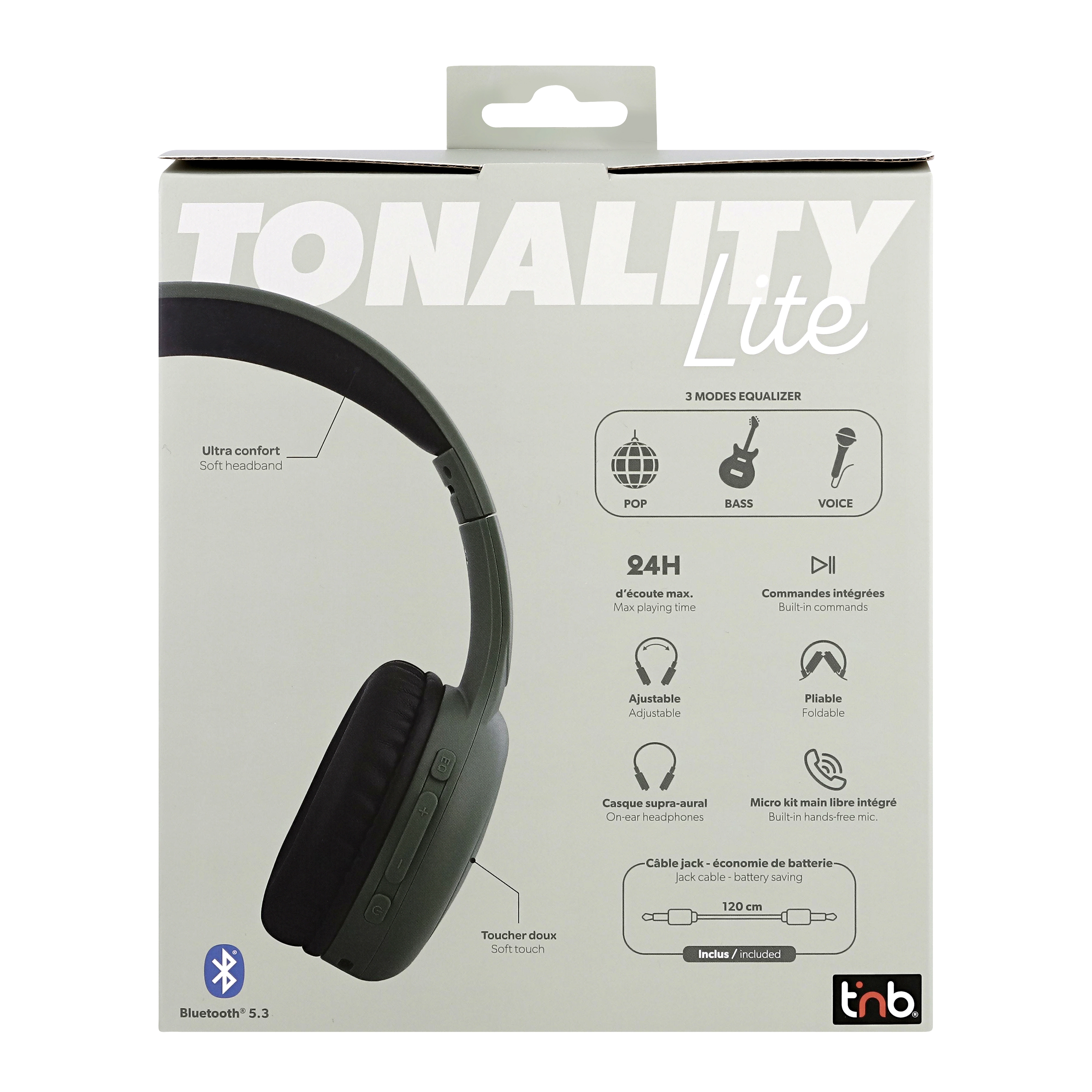 The TONALITY supra-aural headphones, or the combination of sage green and cassis black that give a new dimension to your musical desires. Its foam pads and the lining of the headband provide optimal comfort. The headphones offer you 24 hours of autonomy on a single charge: it accompanies you in music for a whole day! And if that's not enough, use the included 3.5mm jack cable and extend the experience even further. Thanks to the Equalizer mode, switch between the different listening modes, BASS BOOST, POP MODE or VOICE FOCUS, by pressing a simple button! The headphones offer you the most faithful sound reproduction, and the integrated controls allow you to navigate between music, manage the volume, answer a call. The integrated microphone allows you to make your calls with complete freedom of movement. The foldable headphones and the adjustable headband make them essential for all your travels. It's obvious: the TONALITY range is made for you!