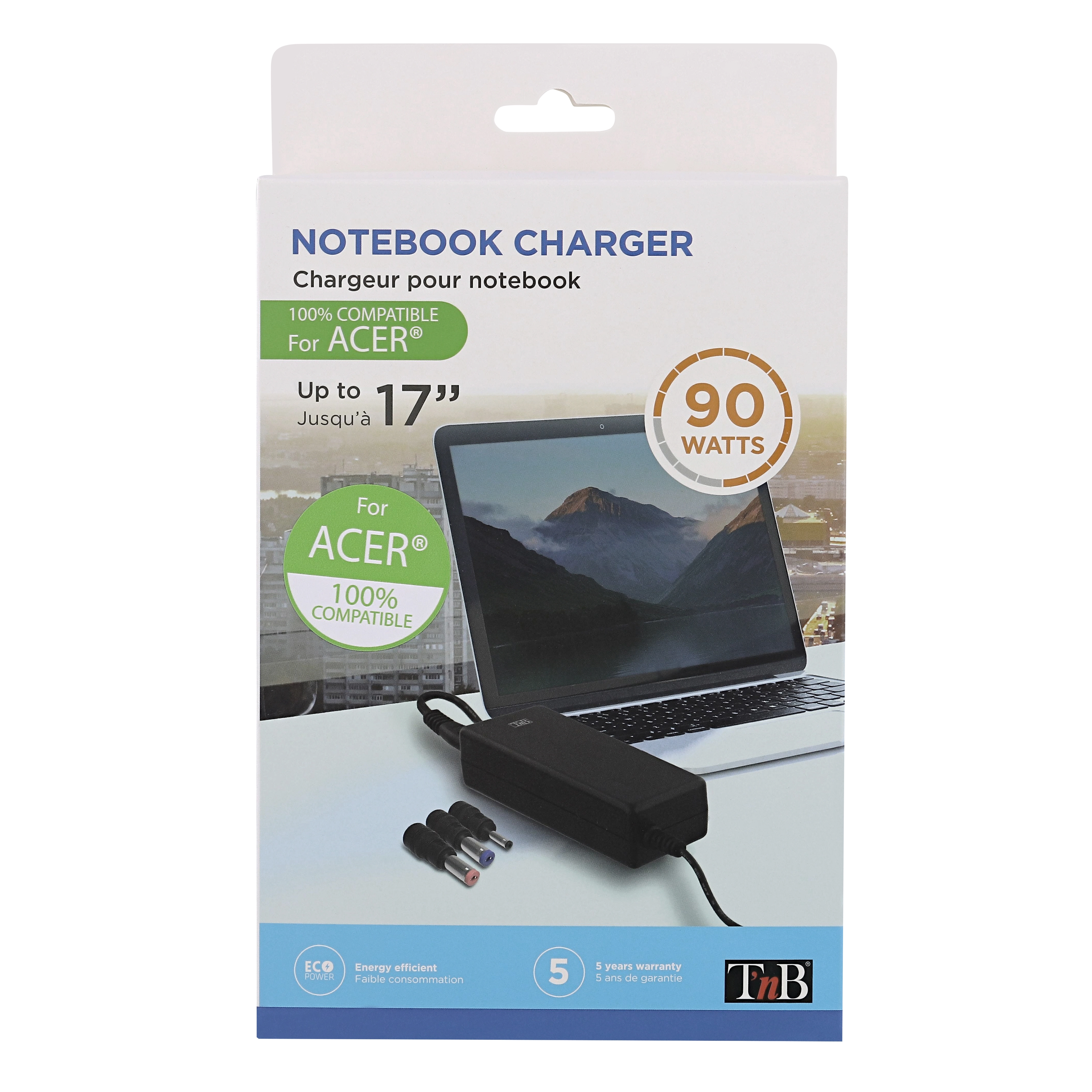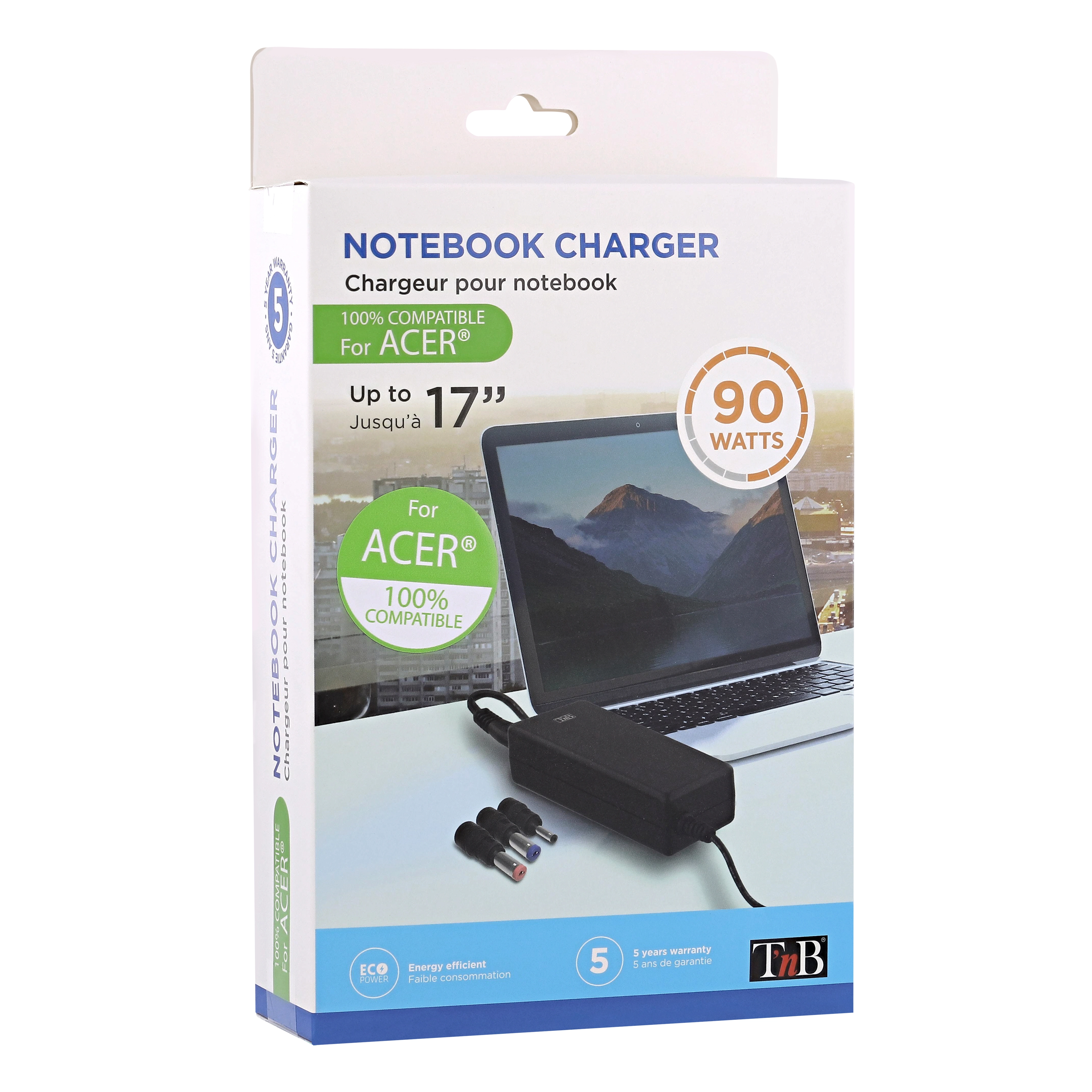 Compatible with laptops in up to 19V (90W max).