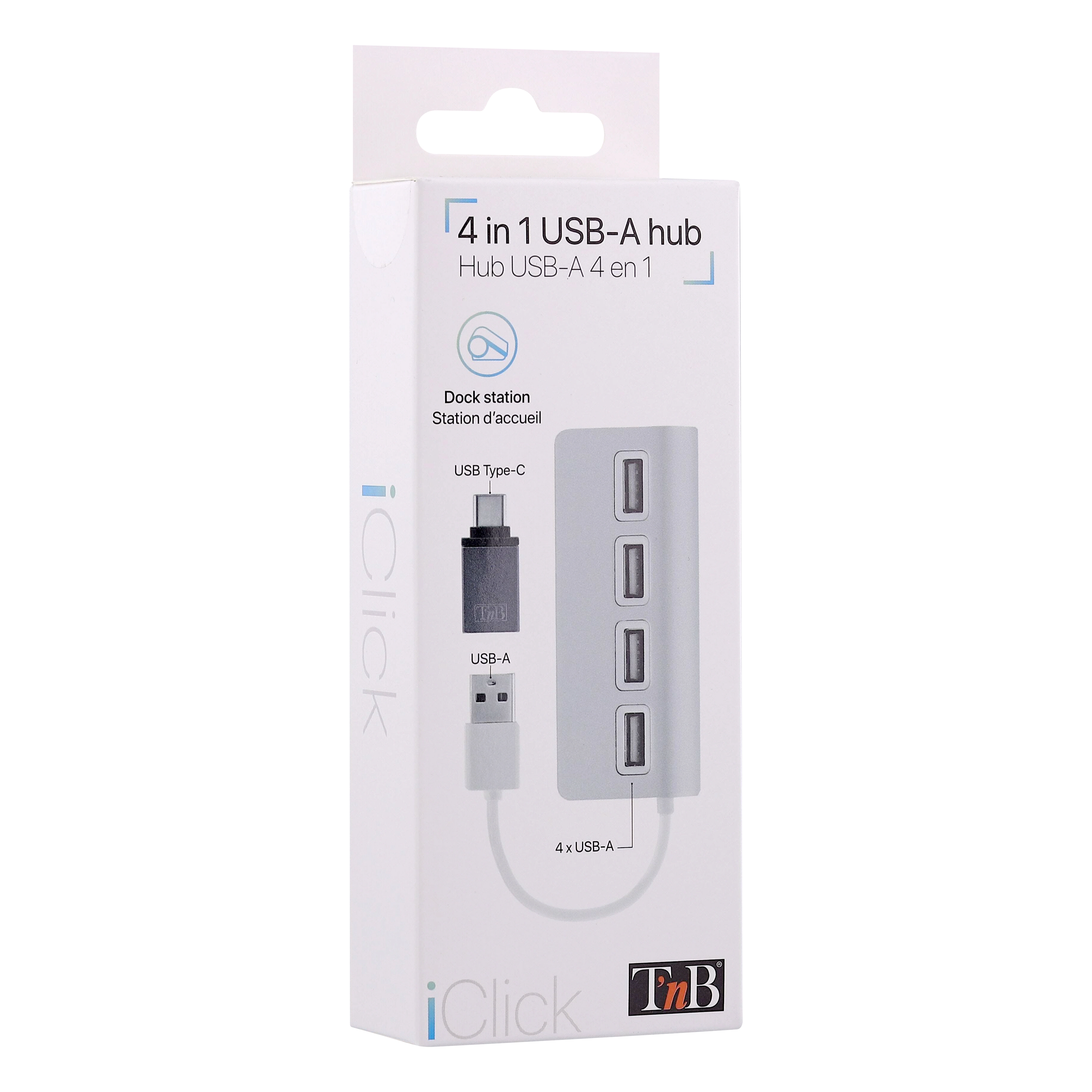 Connect 4 USB-A accessories simultaneously with this hub. Compatible with USB-A and USB-C ports thanks to its supplied adapter. Solid and elegant thanks to its aluminum finish.